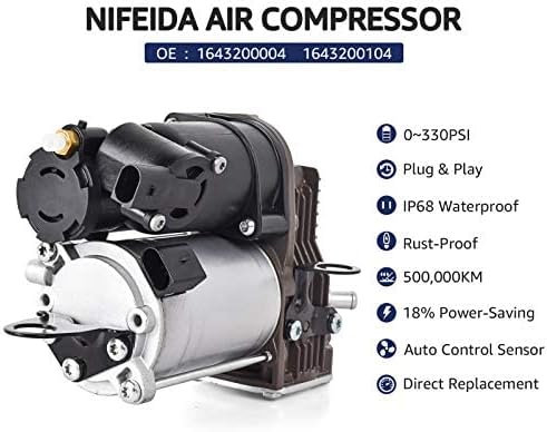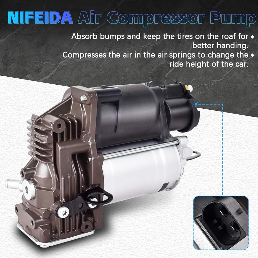مضخة ضاغط تعليق هوائي Nifeida 1643201204 متوافقة مع 2006-2012 Mercedes Benz W164 X164 GL320 GL350 GL450 GL550 ML320 ML350 ML450 ML500 ML550 ML63 AMG 1643200004 1643200304