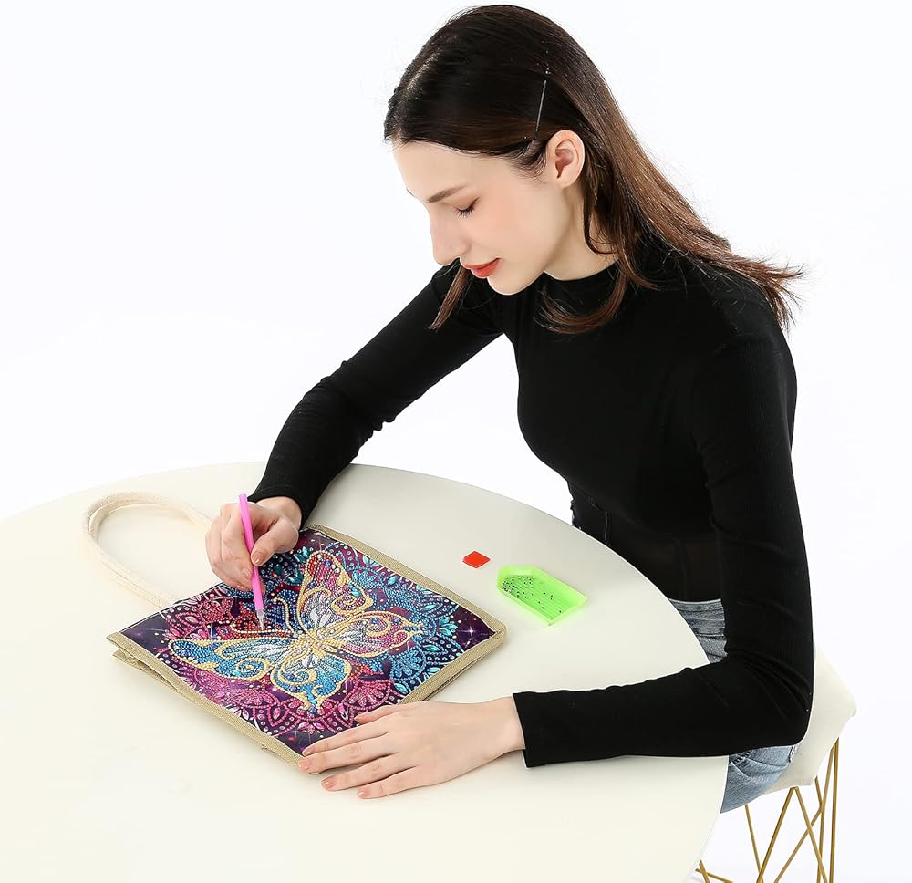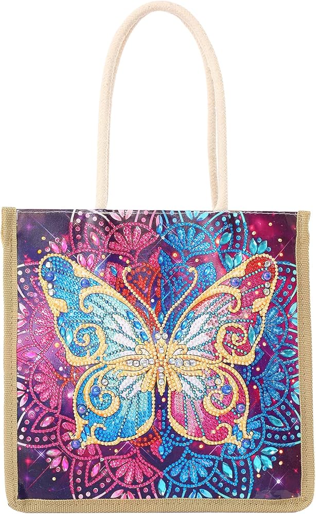 • ✿【Rainbow Butterfly Diamond Painting Tote Bag】Special shape crystal rhinestone diamond painting shopping bags for adults and kids.Package included:1 X canvas tote bag(10.4 X 10 inches)with handles & 1 X Diamond Painting Tool Kit (Drill Pen, Speed up Plate,Jelly glue).