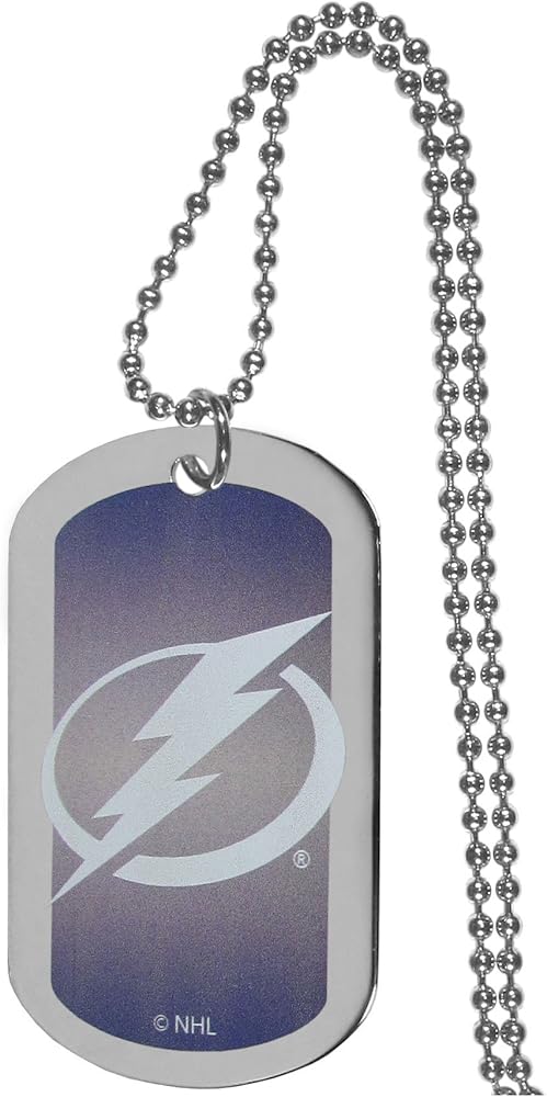 Dog tag necklaces are a fashion statement that is here to stay. The sporty version of the classic tag features a gradient print in team colors featuring a full color team logo over a high polish tag to create a bold and sporty look. The tag comes on a 26" ball chain with a ball and joint clasp. Any Dallas stars would be proud to wear this attractive fashion accessory.