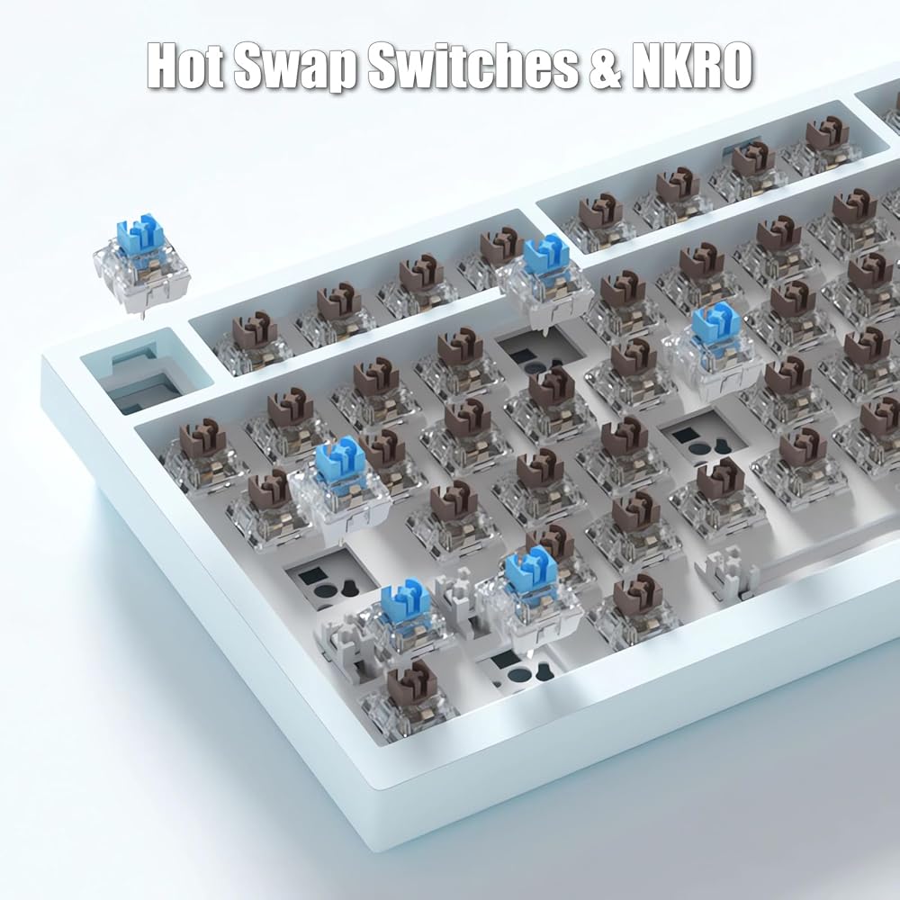 [مفاتيح التبديل السريع & NKRO] - تسمح ميزة التبديل السريع للكم بمبادلة المفاتيح بسرعة دون إزالة لوحة المفاتيح ودون لحام. استمتع بوقتك وقم بتخصيص لوحة المفاتيح الميكانيكية الفريدة الخاصة بك للمفاتيح الحمراء/المفاتيح الزرقاء/المفاتيح البنية/المفاتيح السوداء كما تريد. جميع المفاتيح الـ 82 مضادة للظلال، أي أن جميع المفاتيح غير متعارضة. يتم تسجيل كل ضغطة مفتاح أثناء اللعب المكثف والكتابة السريعة، بغض النظر عن عدد المفاتيح الأخرى التي يتم الضغط عليها في نفس الوقت. تتيح لك الاستمتاع بألعاب عالية الجودة مع استجابة سريعة.