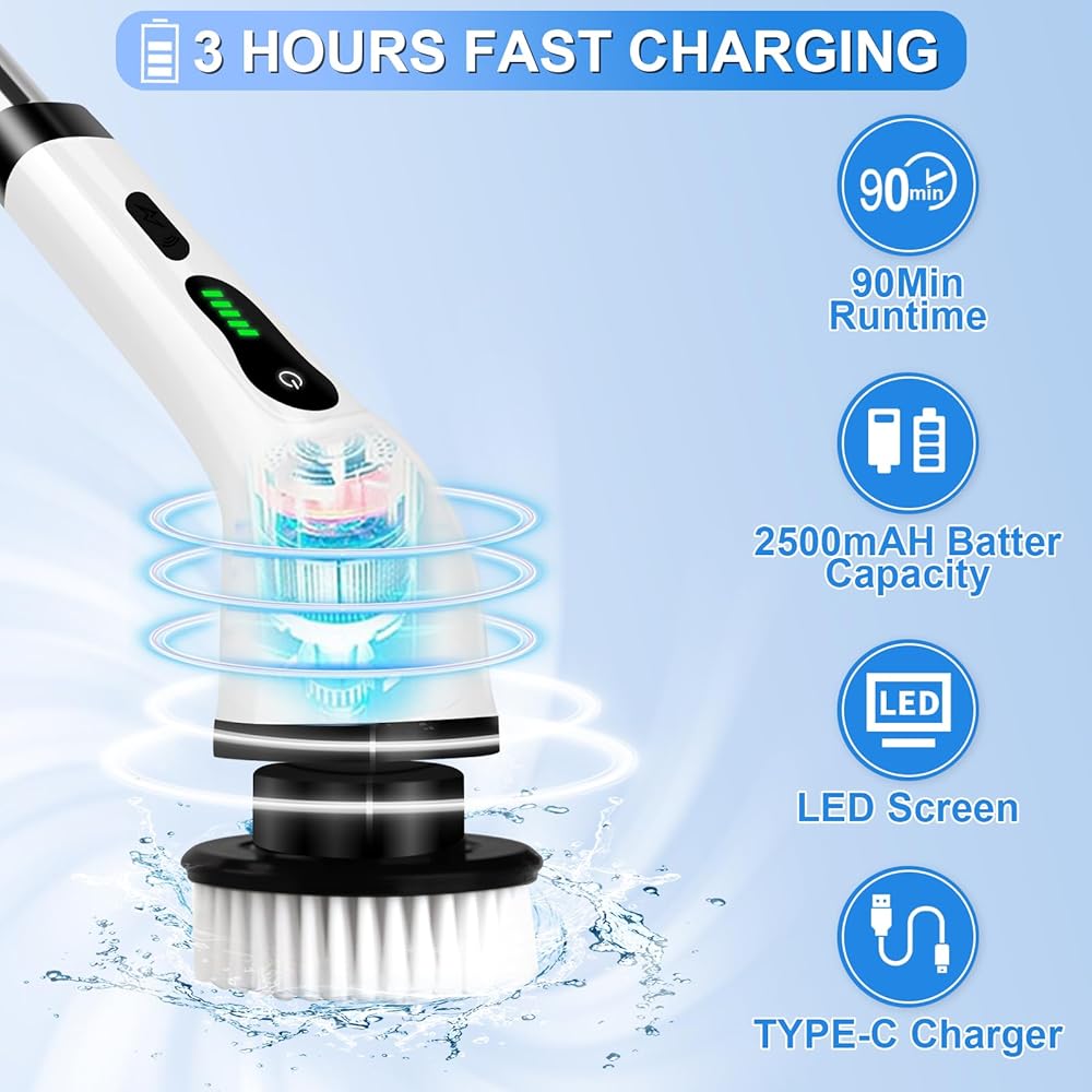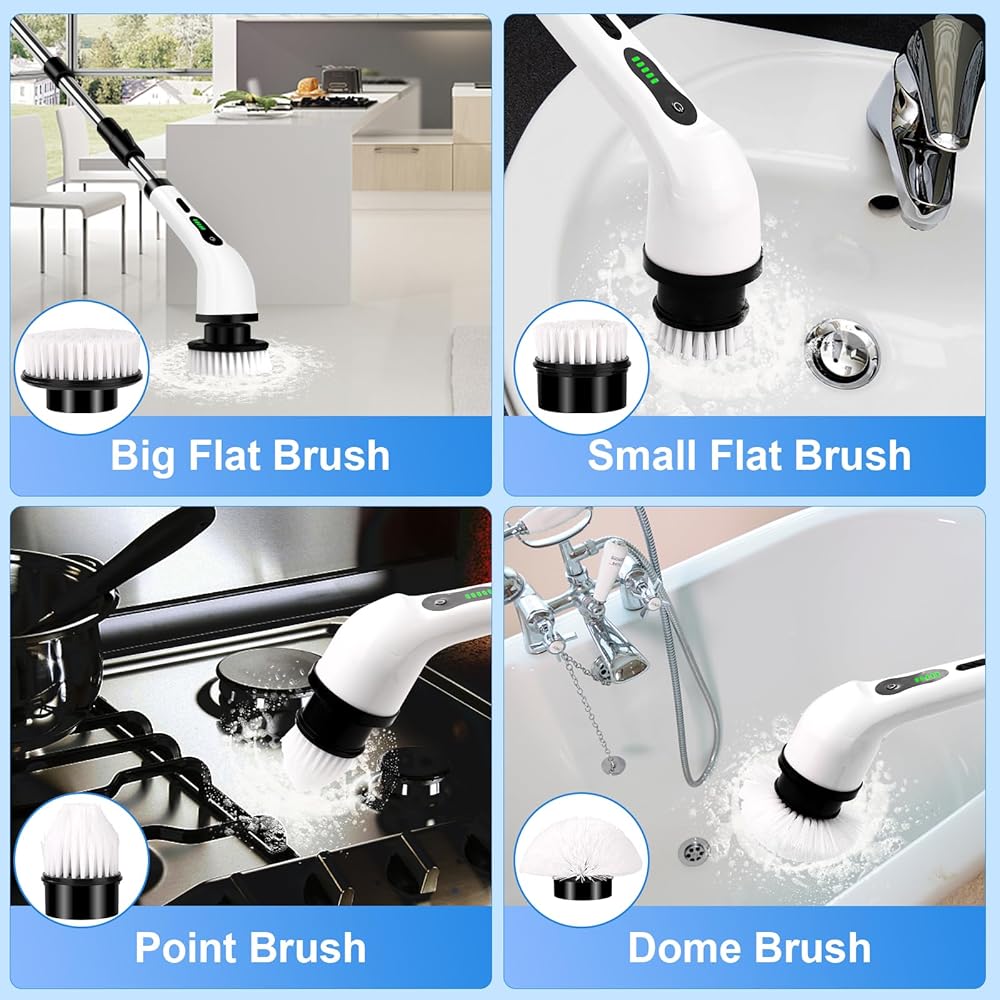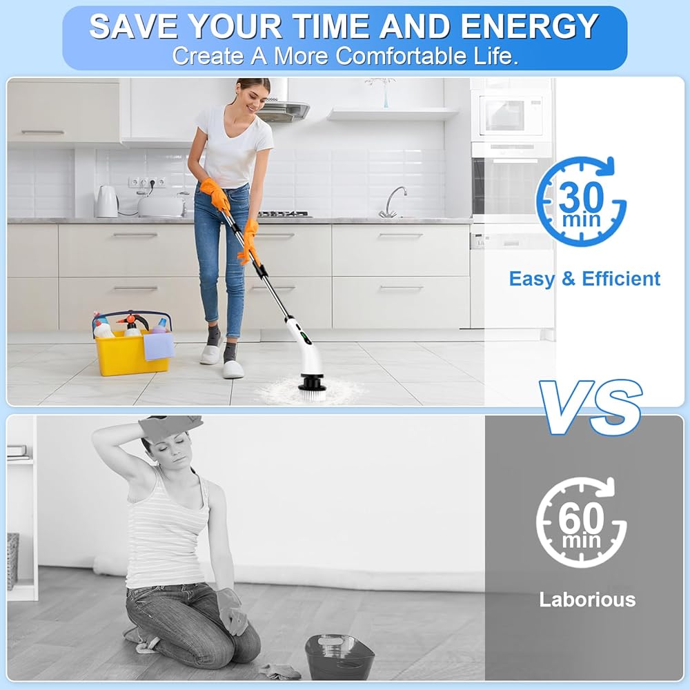 【تصميم سهل】فرشاة التنظيف الكهربائية الخاصة بنا تساعدك على القيام بالأعمال المنزلية في الوضع الأكثر استرخاءً. اجعل مهمة التنظيف الخاصة بك أقل تعبًا. لجعل التنظيف أكثر متعة. ابدأ بالاستمتاع بالأعمال المنزلية مع عائلتك الآن!