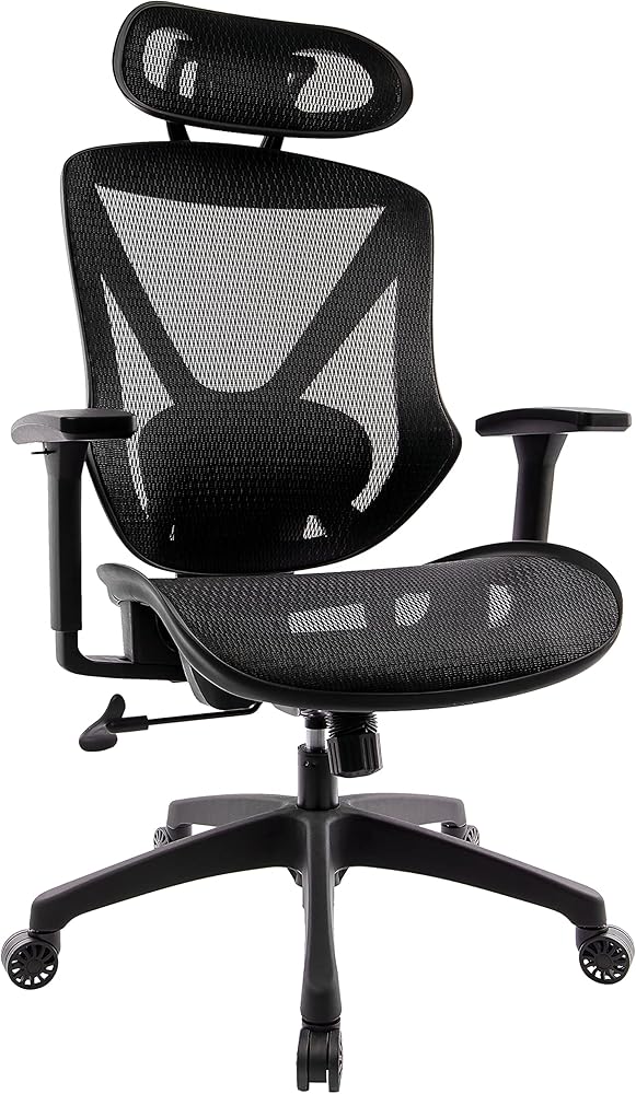 Task chair. Black mesh upholstery allows air to circulate. Seat height adjustment, lumbar support, adjustable arms, tilt tension and tilt lock offer customized comfort. Overall Dimensions: 45.3" – 50.8" H x 28.2" W x 28.6" D. Seat Dimensions: 16.6" – 20.3" x 20.1" x 18.3" (H x W x D). Back Dimensions: 25.4" x 19.2" (H x W). Arm Dimensions: 25.0" – 31.8" x 20.2" (H x D). Adjustable head rest. Suitable for up to 10 hours of use per day. Supports up to 275 lbs. Chair Height: 45.3" – 50.8" H. Easy assembly - Easy to follow instructions with corresponding part packs to reduce confusion and assembly time. Meets or exceeds ANSI/BIFMA standards. 7-year manufacturer limited warranty.