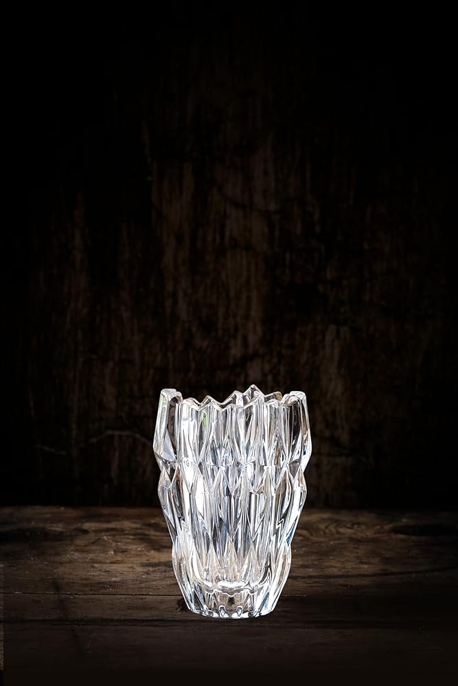 DESIGN: The brilliant crystal and the extra-ordinary pattern of the bowl have a wonderful and sparkling light refraction. The QUARTZ glass vase stands out with its extraordinary design.