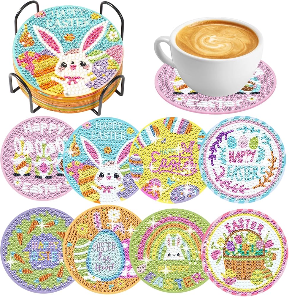 ما ستحصل عليه: سوف تحصل على مجموعة قواعد الأكواب الفنية الماسية لعيد الفصح، مما يجعل منزلك مليئًا بأجواء الاحتفالات! تأتي قواعد الأكواب الفنية الماسية لعيد الفصح في 8 أنماط مختلفة، بما في ذلك أرانب عيد الفصح وبيض عيد الفصح وغيرها من الأنماط التي تحمل طابع عيد الفصح. استخدام قواعد الأكواب الفنية الماسية لعيد الفصح كديكور لحفلتك أو منزلك سيمنحك تجربة عطلة رائعة