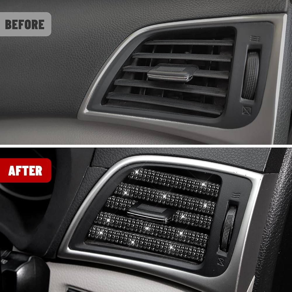 【مادة متينة】زخارف منفذ فتحة تهوية السيارة هذه مصنوعة من مادة PVC عالية الجودة من حجر الراين، مع خصائص مقاومة التآكل ومقاومة التآكل الكيميائي، وهي متينة في الاستخدام، ويصعب كسرها، وليس من السهل أن تبهت، وعديمة الرائحة، وملاءمة سلسة، ولا من السهل أن تسقط.
