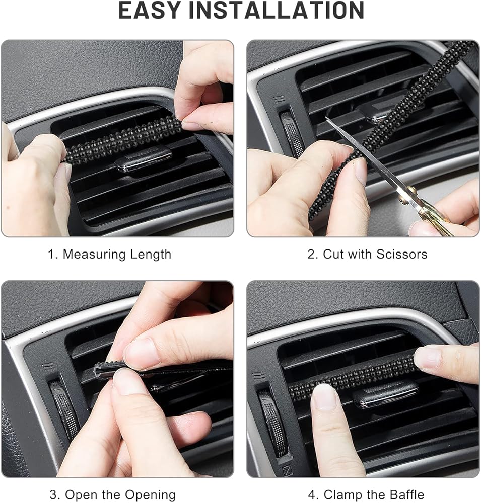 [تركيب غير مدمر] إن ديكور فتحة تهوية مخرج السيارة سهل الاستخدام للغاية، كل ما عليك فعله هو تنظيف مخرج الهواء لمكيف الهواء الخاص بك قبل التثبيت، ثم مقارنة حجم مخرج الهواء لمكيف الهواء واستخدام المقص للحصول على طول منفذ الهواء، وافتح الشريط الزخرفي على شكل حرف U ثم قم بتثبيته، التركيب المباشر، لن يسبب ضررًا لمنفذ الهواء.