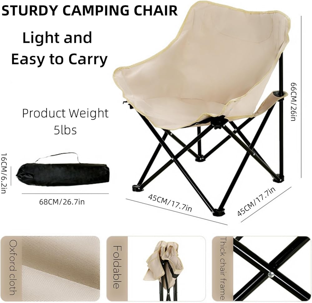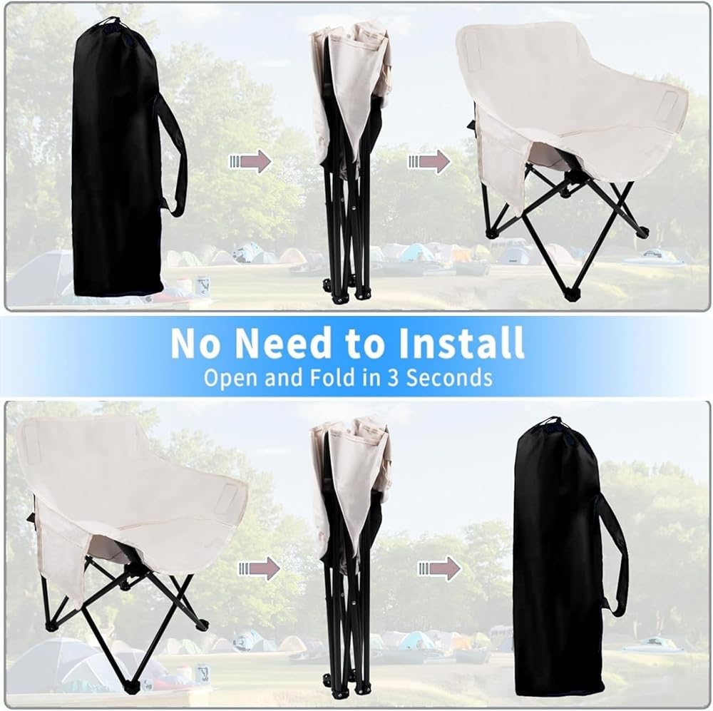 【قابل للطي والحمل 】 يبلغ مقاس كرسي التخييم القابل للطي 17.7 × 17.7 × 26 بوصة ويمكن طيه حتى 26.7 × 6.2 × 6.2 بوصة. من خلال إجراء واحد بسيط للغاية، يمكنك فتح الكرسي وطيه دون الحاجة إلى تركيب إضافي ومرهق، ولا داعي للقلق بشأن تثبيت الملحقات أو فقدانها.