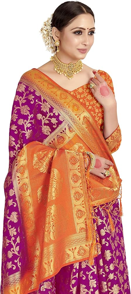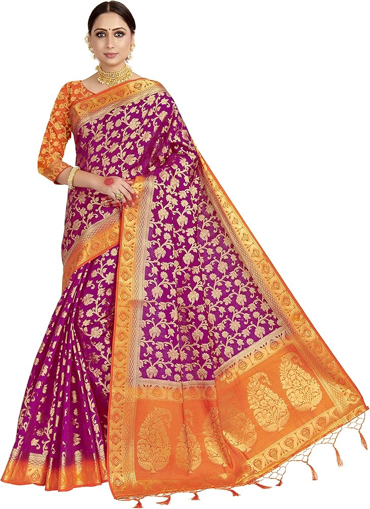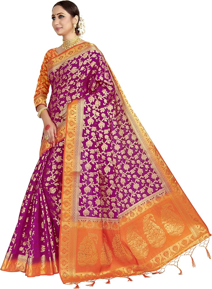 • المحتوى - ساري واحد مع قطعة بلوزة غير لاصقة. نوع العمل: تصميم زاري منسوج في كل مكان / لمسة نهائية ناعمة / مريحة في الارتداء / العناية بالغسيل: غسيل جاف، يحتوي هذا المنتج على أعمال زاري في كل مكان ويتطلب إعداد المنتج الكثير من العمل اليدوي، لذلك قد تكون هناك فرصة لعدم التجانس في التصميم واللون على المنتج، يرجى ملاحظة ذلك قبل الشراء، نحن نقدم هذه المعلومات فقط حتى لا نفسد تجربة العملاء
