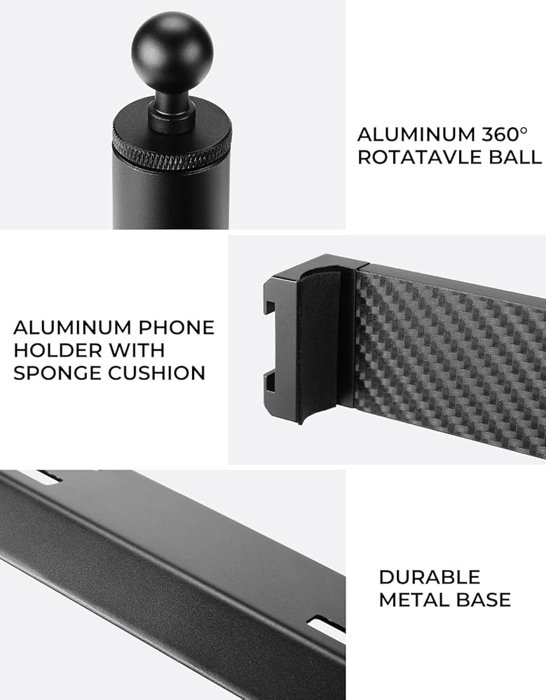 【نظام صلب صخري】يتميز حامل الهاتف بقاعدة معدنية بالكامل، وتصميم قفل لكل جزء، لتثبيت هاتفك في مكانه بشكل آمن حتى على الطرق الوعرة/الوعرة، والمنعطفات الحادة، والكبح المفاجئ، والتسارع، وما إلى ذلك.