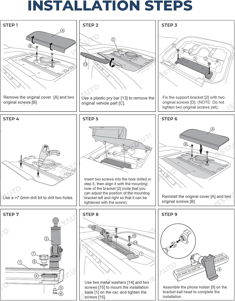 【نصائح التثبيت 】 يتم تركيب حامل الهاتف الخلوي على منطقة لوحة القيادة العلوية. يتطلب إزالة وحفر لوحة القيادة (فتحتان). يشتمل على جميع الأجهزة وتعليمات التثبيت اللازمة لسهولة التركيب.