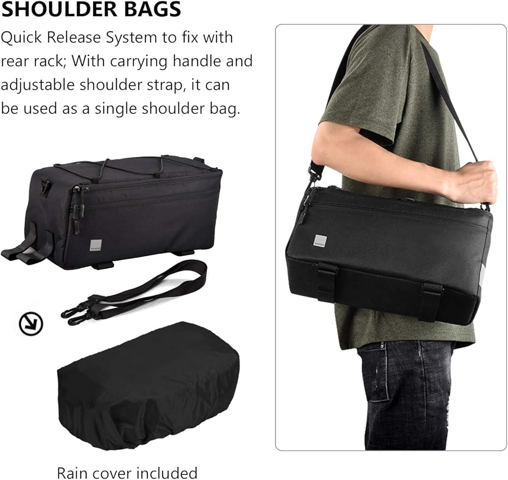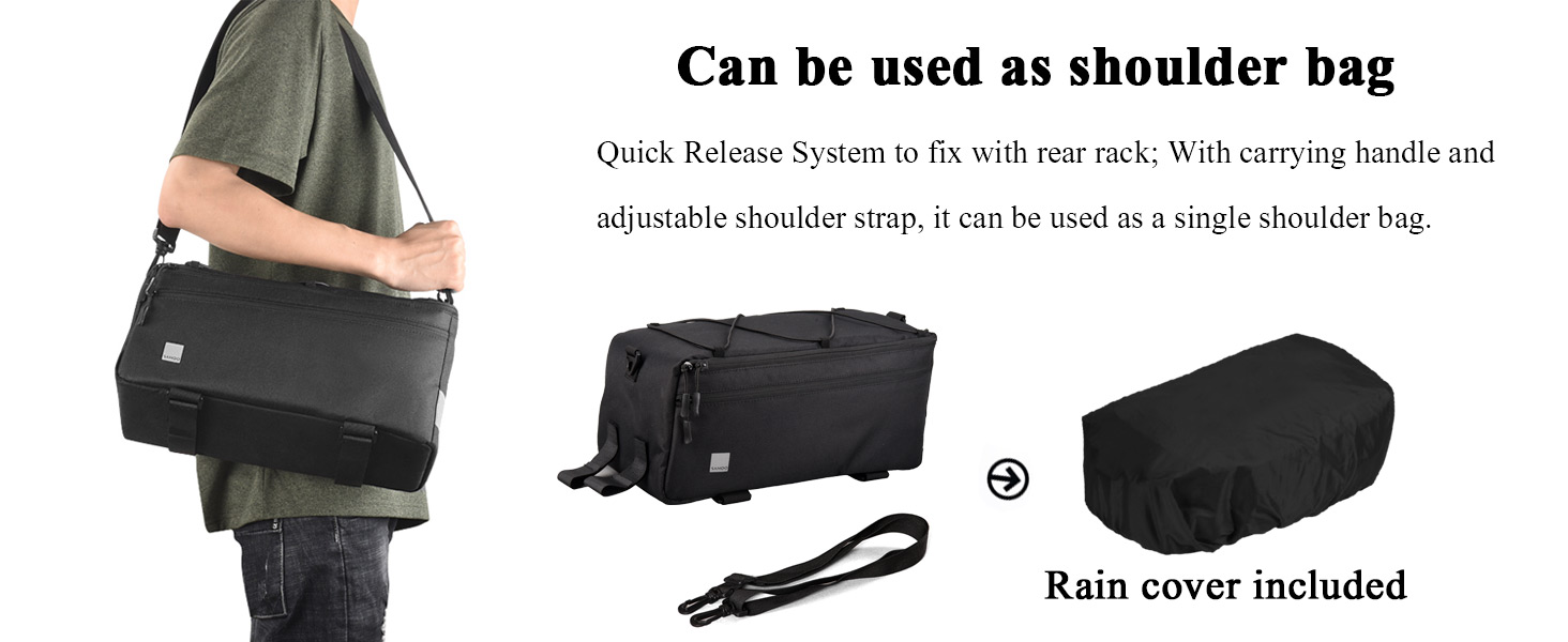 بالإضافة إلى حزام التثبيت القوي المزود بخطاف وحلقة، سيتم تثبيته بأمان خلف السرج. يمكن استخدام هذه الحقيبة كحقيبة كتف، حيث يمكن إخفاؤها في الجزء السفلي من الحقيبة عند عدم استخدامها