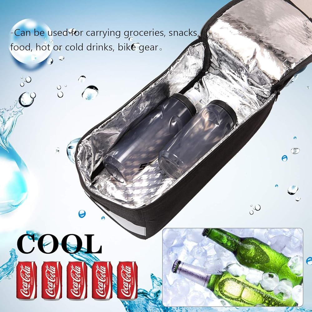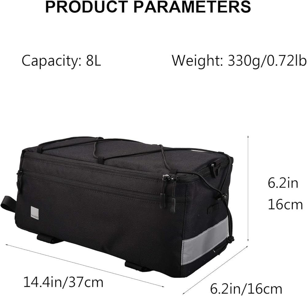 سعة تحميل كبيرة 8 لتر تسمح بسترة دراجتك وأدوات الإصلاح ومضخات الإطارات والطاقة المتنقلة وزجاجات المياه والمزيد. حجم الحقيبة هو الطول 14.4 * العرض 6.2 * الارتفاع 6.2 بوصة