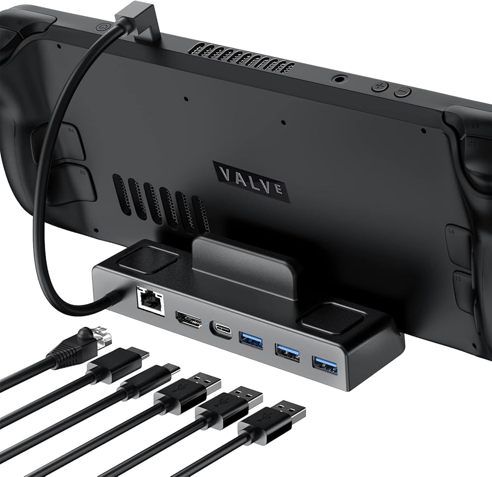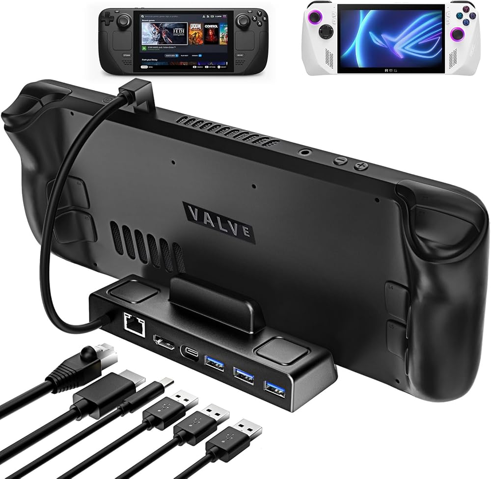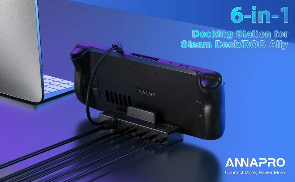 محطة إرساء ANNAPRO لسطح البخار/سطح البخار OLED وROG Ally، قاعدة 6 في 1 مع HDMI 2.0 4K@60 هرتز، جيجابت إيثرنت، 3 × USB-A 3.0 وPD3.0 100 واط USB-C منفذ شحن كامل السرعة