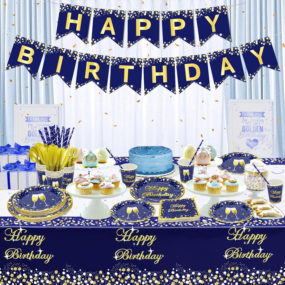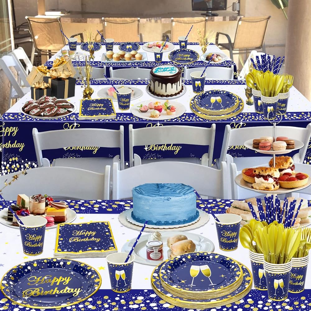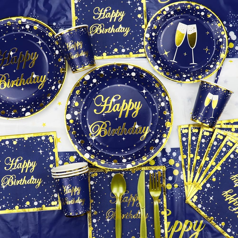 This high-end sophisticated blue and gold party supplies set is suitable for any age and gender, gold foil design gives you a sparkling visual treat to add sparkle to your party.
