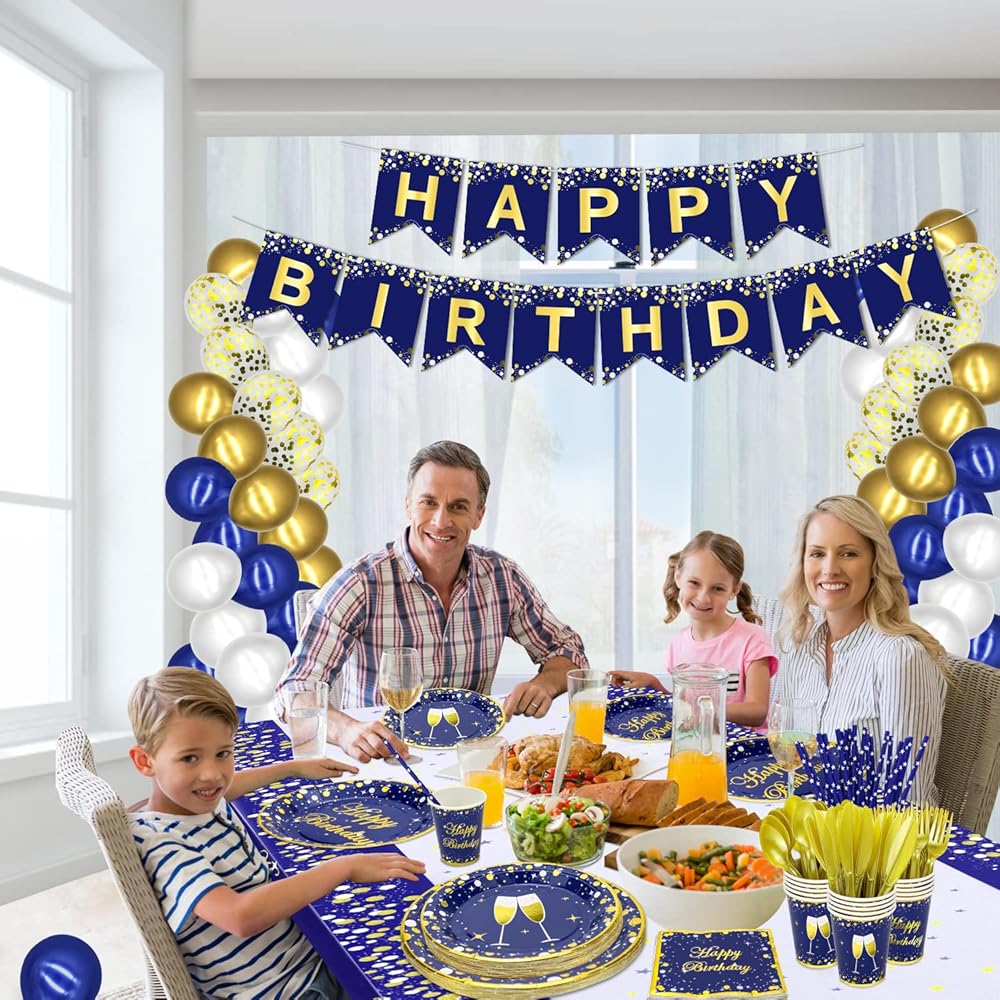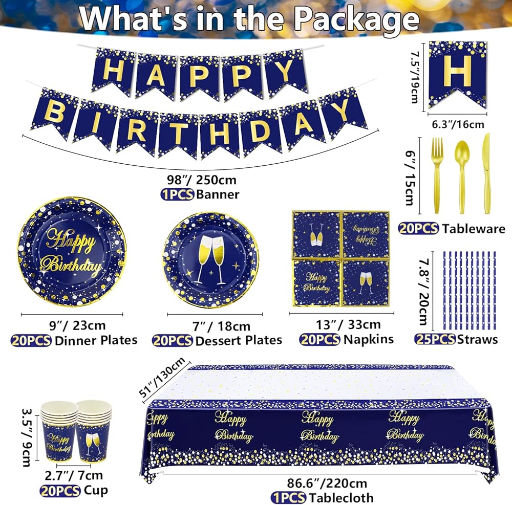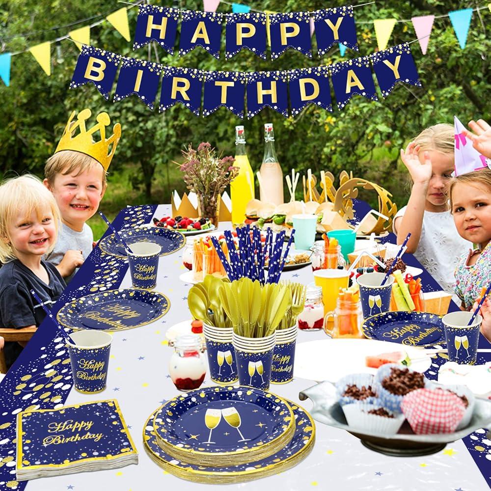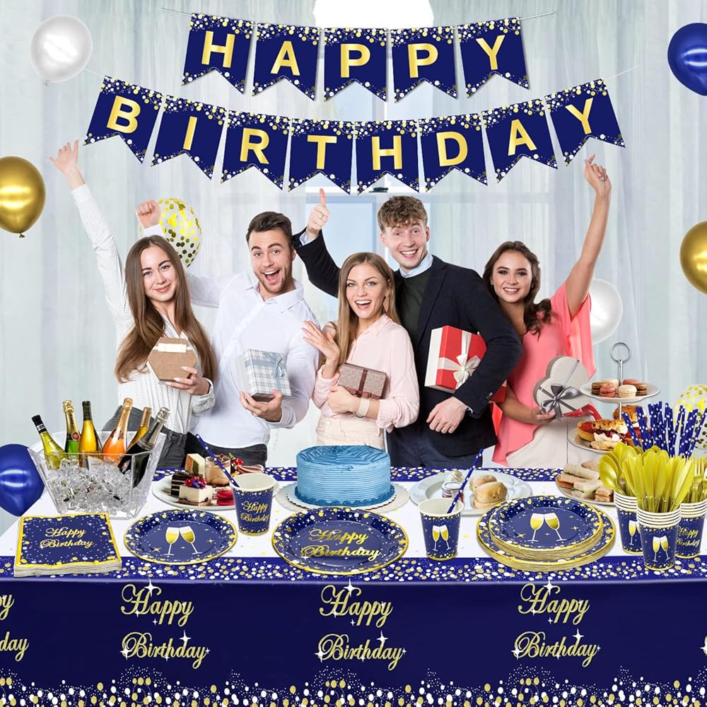 This high-end sophisticated blue and gold party supplies set is suitable for any age and gender, gold foil design gives you a sparkling visual treat to add sparkle to your party.