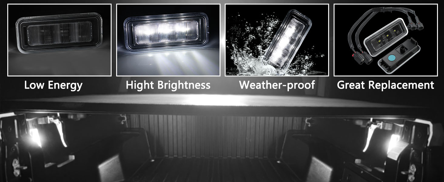 ►مادة رائعة: مصنوعة من معالجة تقنية متقدمة، غطاء بلاستيك ABS وغطاء من البولي كربونات (PC)، متين، مقاوم للماء (IP67، يمكن الاحتفاظ به تحت عمق ماء 1 متر لمدة لا تزيد عن 30 دقيقة.) الغبار والخدش والصدمات. تعمل إضاءة سرير الشاحنة هذه بشكل جيد حتى في الطقس السيئ، وهي مثالية للمناخ الأمريكي القاسي.