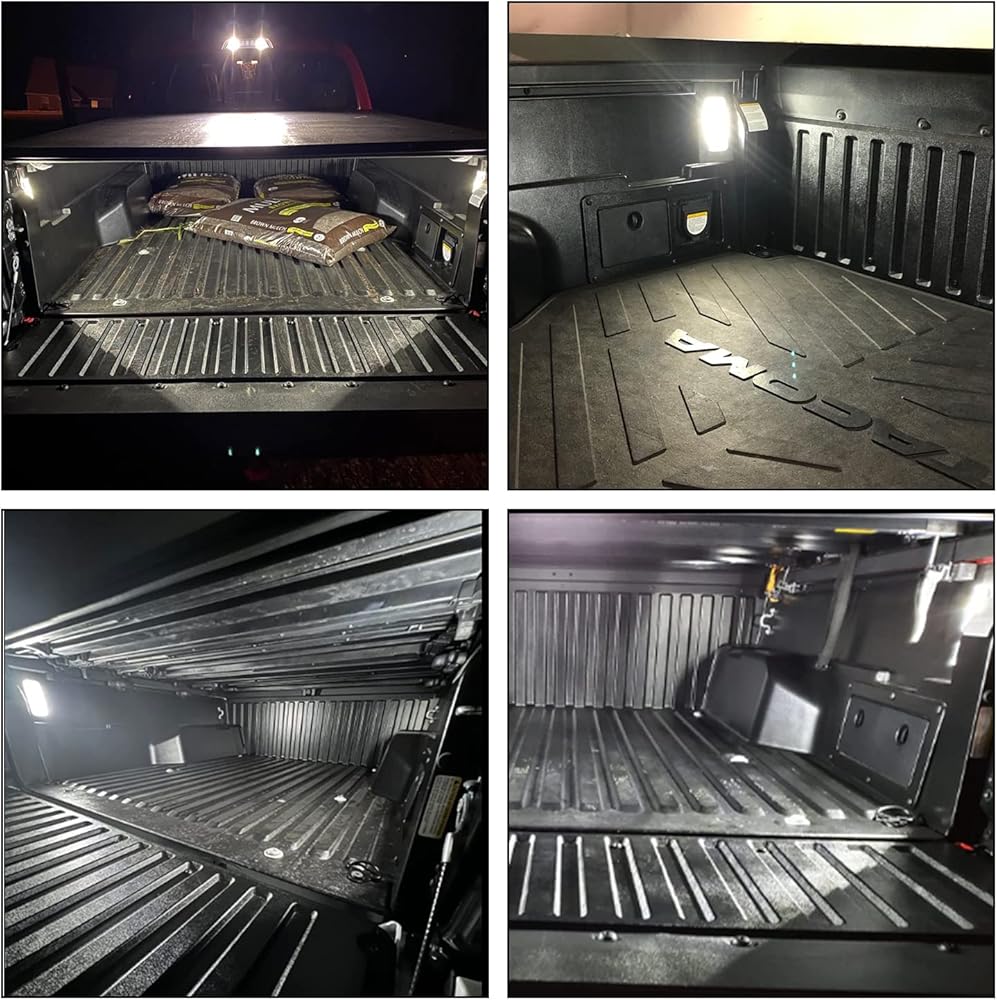 ►أضواء ساطعة للغاية: تحتوي مصابيح LED لسرير الشاحنة على 6 قطع من رقائق LED ولها ضوء أقوى، ويمكن استخدامها في الجزء الخلفي من شاحنة السيارة، واليسار، واليمين، والأسفل، وتضمن رؤية الضوء عند العمل ليلاً وتغميق المناسبات. مريحة لتنظيم الأشياء في الظلام.