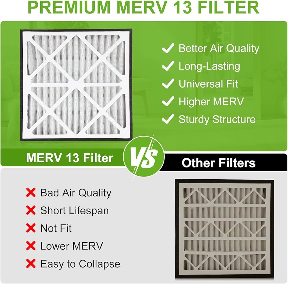 【Longer Lifespan】:The 20x20x3 MERV 13 air filter is designed to last up to 6 months or longer that depends on local environment factors. We recommend you change your air filter every 6 months for the best performance.