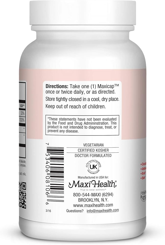 All Maxi Health products are certified kosher, under the Orthodox Union (OU) and the Udvari Kashruth (UK). Legal Disclaimer: These statements have not been evaluated by the FDA. This Product is not intended to diagnose, treat, cure or prevent any disease.