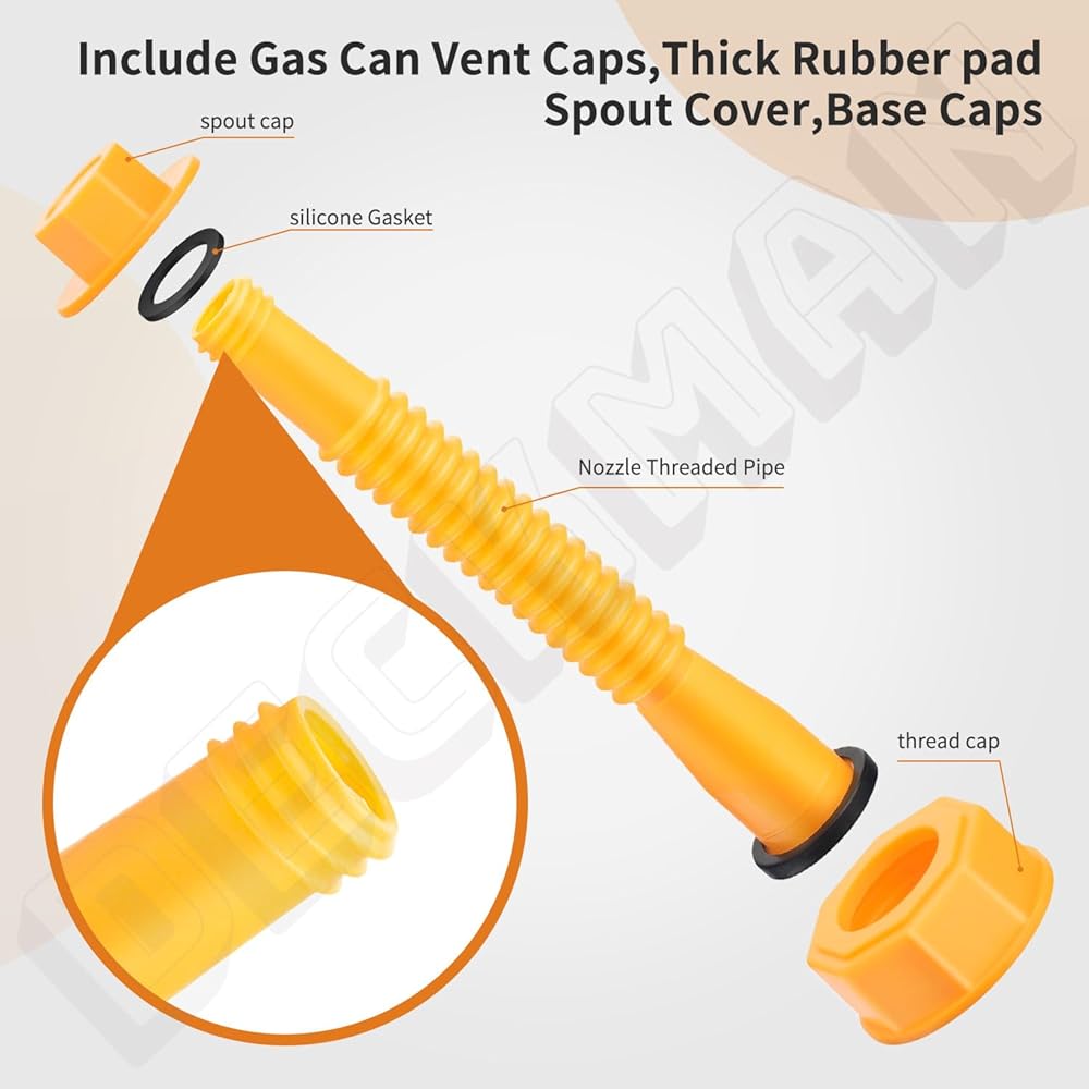 مادة عالية الجودة: فوهات علبة الغاز هذه مصنوعة من بلاستيك HDPE، قابلة للانحناء وليس من السهل كسرها، ومتينة. حشية مطاطية سميكة وواسعة، مصنوعة بدقة لتناسب حاوية البنزين بشكل أفضل، وتحسن عمر الخدمة، وآمنة ولا تسرب
