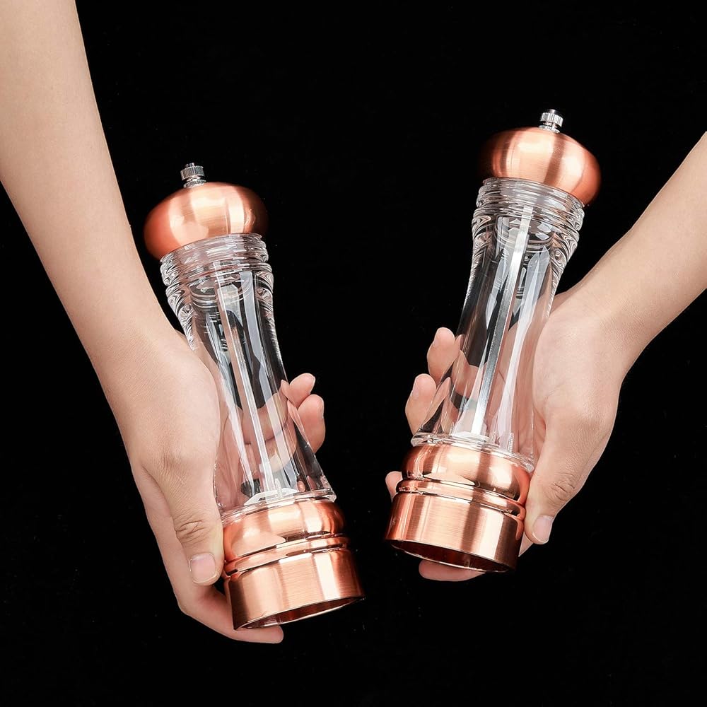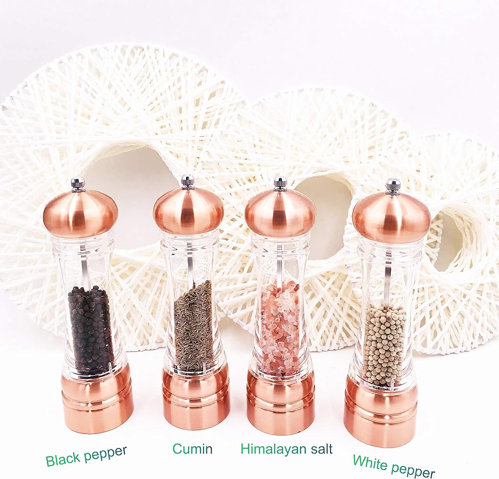 قابلة لإعادة الملء بسهولة - بفضل التصميم الشفاف، يمكن عرض سمك واستخدام المحتويات الموجودة في الحاوية بوضوح ويسهل إعادة تعبئتها، ما عليك سوى سحب الجزء العلوي من مطحنة الفلفل وإعادة ملئها باختيارك من حبوب الفلفل.