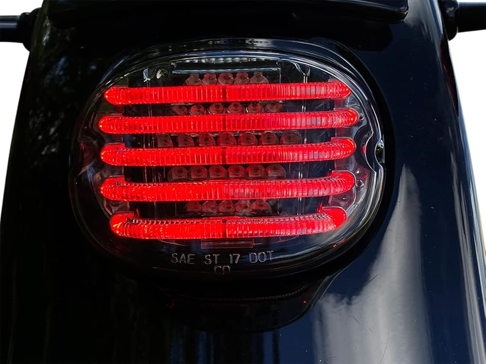 ProBEAM Integrated Taillight combines 5 LED running light pipes with full contrast red brake LEDs with built in left and right amber auxiliary turn signals. Replacement gasket and nylon washers included for easy plug and play installation into OEM taillight circuit board. Available with a Red or Smoked lens with optional license plate illumination window. Compatible with 1999-2013 Harley-Davidson Sportster models (Except XL1200N, XL1200X, XL1200V or XL883N); 2014-2019 XL883L & XL1200T, 1999-2017 Dynas (Except 2009-2017 FXDB, 2010-2017 FXDWG), 1999-2017 Softails (Except FXS, FLS, FXSB, FXSBSE, FXSTD, FXSTDSE, FLSTN, FLSTNSE, FXCWC, 2010 FLSTSE2), 2018-2020 Heritage Classic (FLHC), 1999-2013 Electra Glide, Ultra Classic, Ultra Limited models (including CVO), Road King Classic (FLHRC), Road Glide Ultra (FLTRU), Road Glide Ultra CVO (FLTRUSE), 1999-2009 Road Glide Standard (FLTR), 2006-2009 Street Glide (FLHX), 1999-2020 Road King (FLHR), 2014-2015 Limited CVO, 2015 Road Glide Ultra CVO (FLTRUSE), 2019-2020 Electra Glide Standard (FLHT). Not Recommended for inverted installation on 01 FXDWG2, 02 FXDWG3, 99-08 FXDWG, 2008-2013 FXDF, 99-09 FXSTB, 08-11 FLSTSB, 99-10 FXSTC, 99-07 FXST, 99-06 FXSTS, 09-12 XR1200 & XR1200X. Not compatible on Trike models, on models with Run/Brake/Turn module installed or on CanBus models with Brake/Turn BCM programming. Important: DOT & SAE Compliant run and brake. Integrated turn signals are intended for use as auxiliary lighting only. Integrated turn signals are NOT intended to replace any original equipment lighting installed on the vehicle and should not be used for that purpose. This product must be wired so that it does not interfere with any original equipment lighting. US Patents: D807545, D807546, D808050. China Patent: ZL201730257957.9 ProBEAM Integrated Taillight is an aftermarket replacement for Harley-Davidson OEM Part 68245-03. It is compatible with Harley-Davidson motorcycles, but is manufactured by Custom Dynamics.