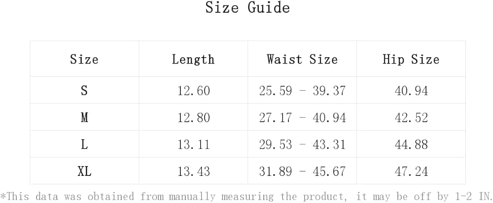 S:Hip Size:40.9IN,Length:12.6IN,Waist Size:25.6-39.4IN
