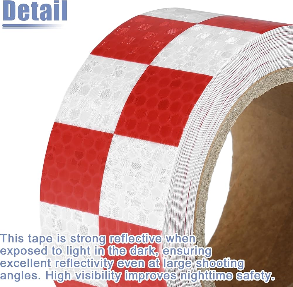 السمات: هذا الشريط عاكس قوي عند تعرضه للضوء في الظلام، مما يضمن انعكاسًا جيدًا حتى في زوايا التصوير الكبيرة.