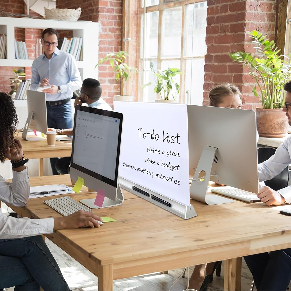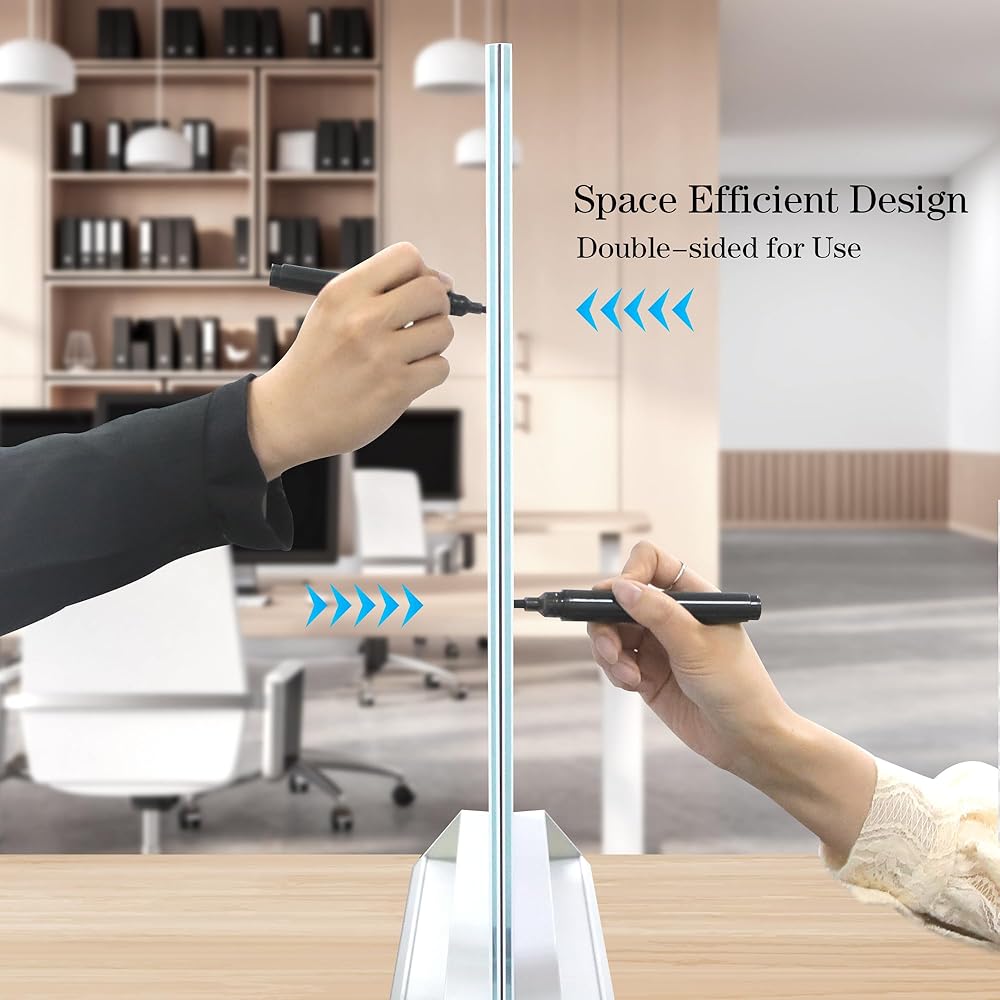 【مادة ممتازة】: مصممة لأداء طويل الأمد، تتميز لوحة المسح الجاف لسطح المكتب بسطح زجاجي قوي ومتين بدون إطار ويمكنها مقاومة الخدوش والانبعاجات بشكل جيد بدون خطوط أو تلطيخ أو بقع. يمكنك لصق بعض قوائم المهام والملاحظات عليها باستخدام المغناطيس القوي.