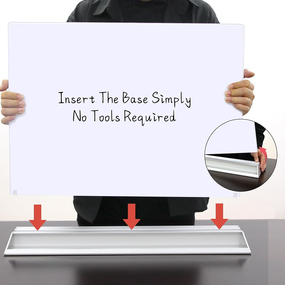 【هيكل قوي】: القاعدة المعدنية ذات الحصائر المطاطية ذات الزاوية المضادة للانزلاق تحمل لوح المسح الجاف بقوة وتضمن ثباته في الاستخدام. تتميز لوحة المسح الجاف بأنها قائمة بذاتها وسهلة التجميع دون الحاجة إلى تعليقها على الجدران أو المقصورات.