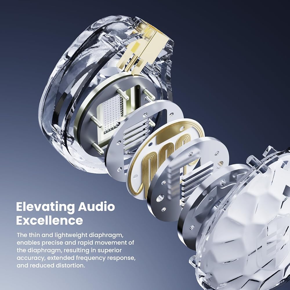 • [1 وحدة غشاء مستو مقاس 4.2 مم ومغناطيس N52 على الوجهين؛ يحقق المحرك القوي ومجموعة المغناطيس الخاصة مجالًا صوتيًا واسعًا واستجابة ترددية سلسة، مما يوفر شفافية أعلى للصوت