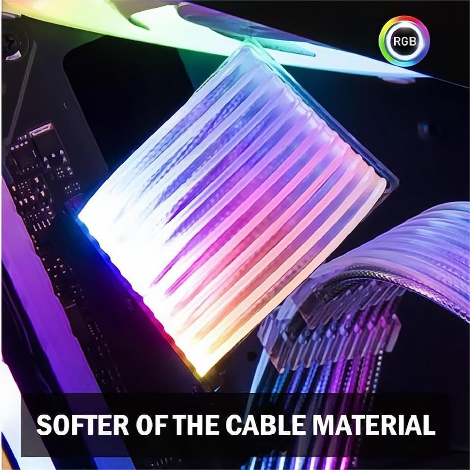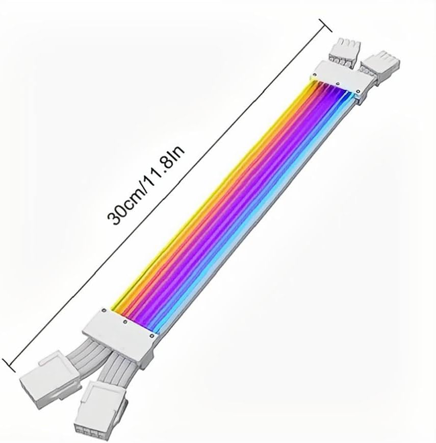 24PIN ARGB extension cable is used for motherboard connection, allowing extension. It features lighting ARGB extension capability, supporting 5V 3PIN connector, compatible with AURA SYNC system. Supporting multiple lighting configurations, providing flexibility for your build. Additionally, both sides of the extension cable are equipped with lighting PCB boards, ensuring consistent and vivid lighting effects. The cable is manufactured with 18AWG wire gauge, ensuring reliable power transmission and durability.