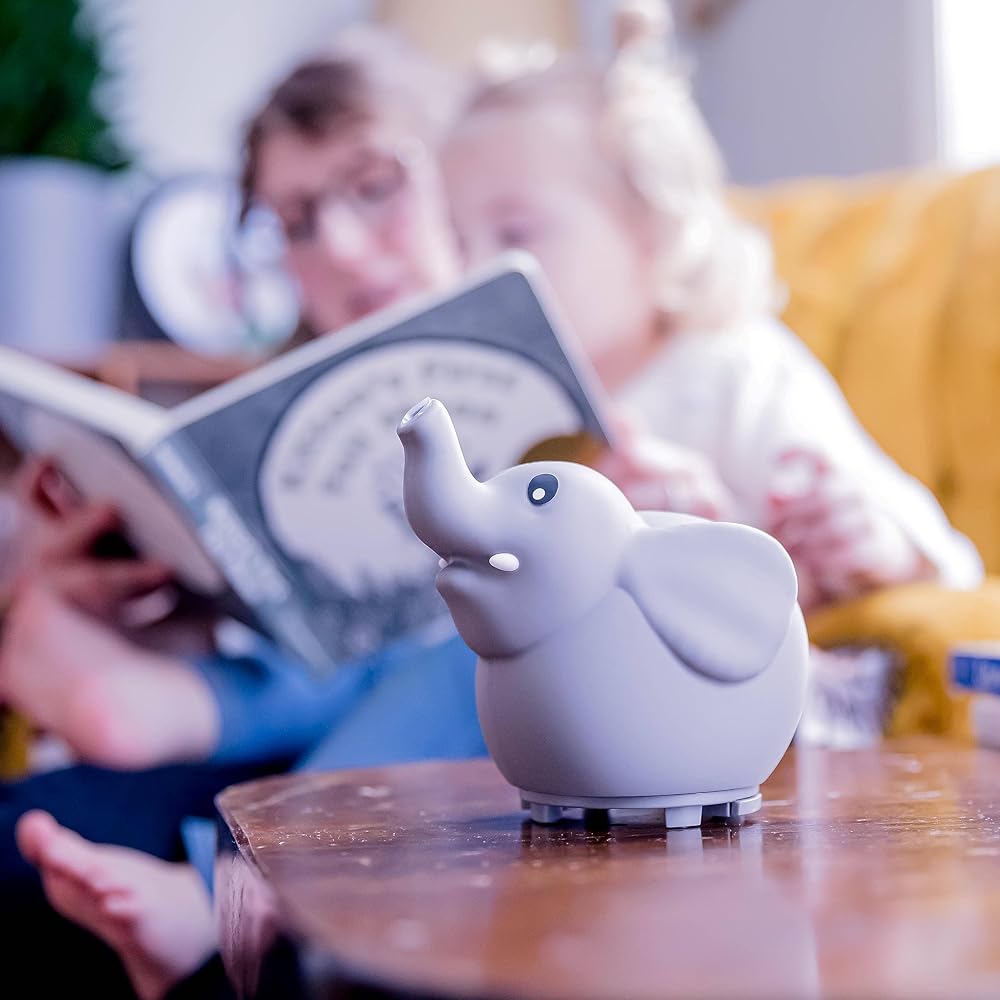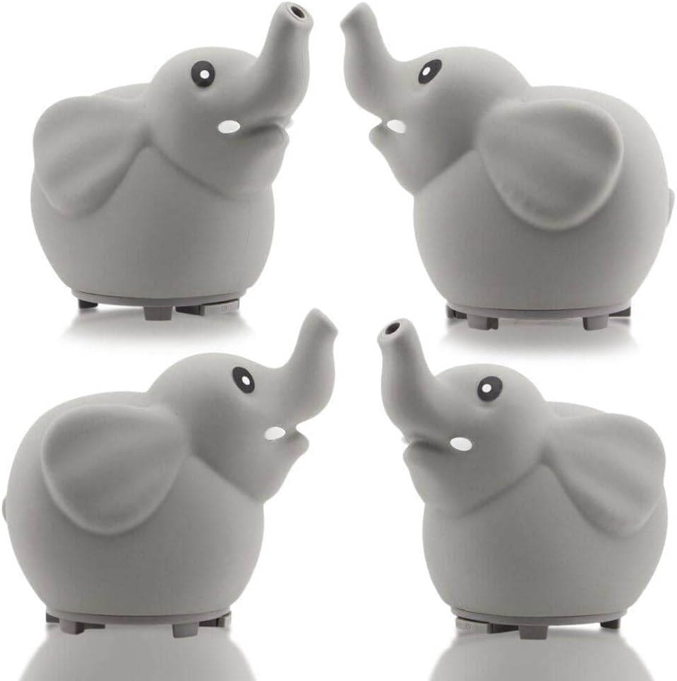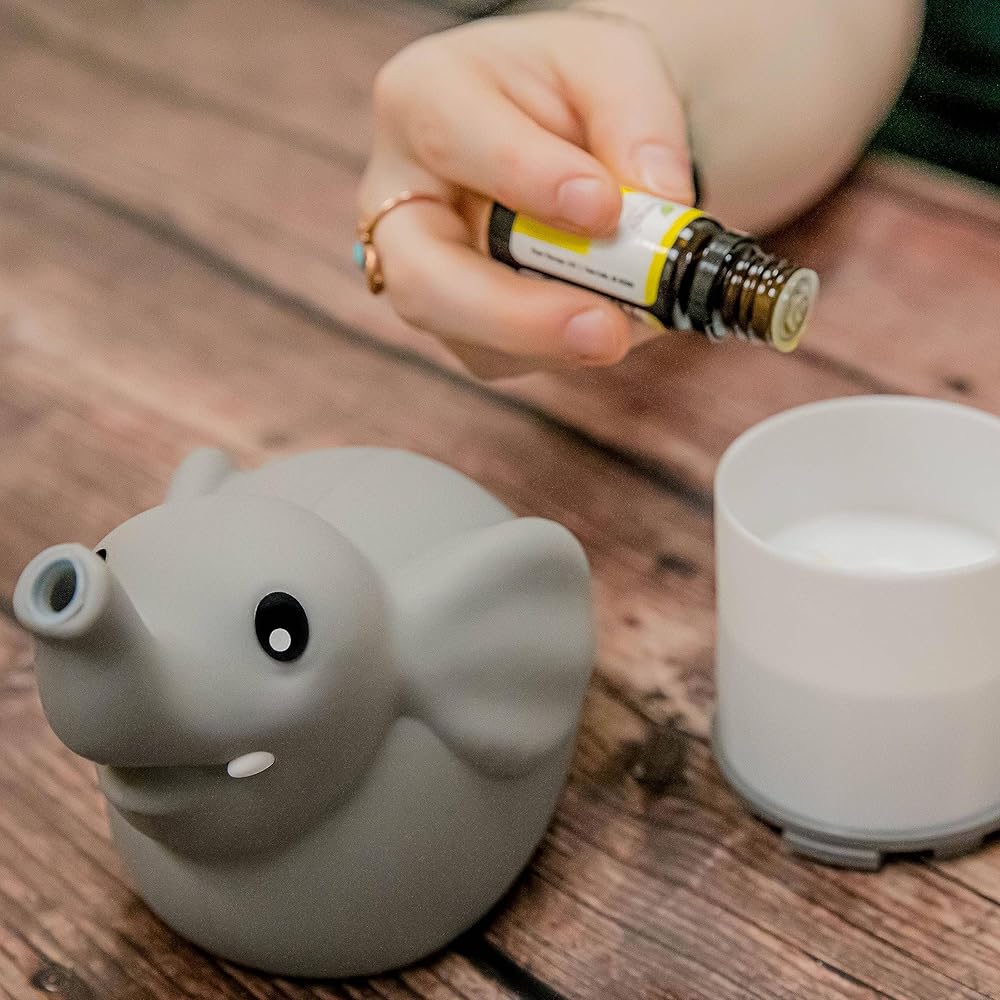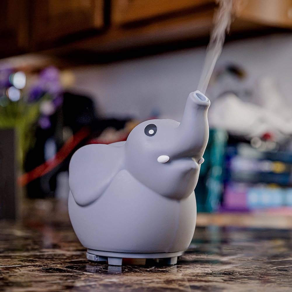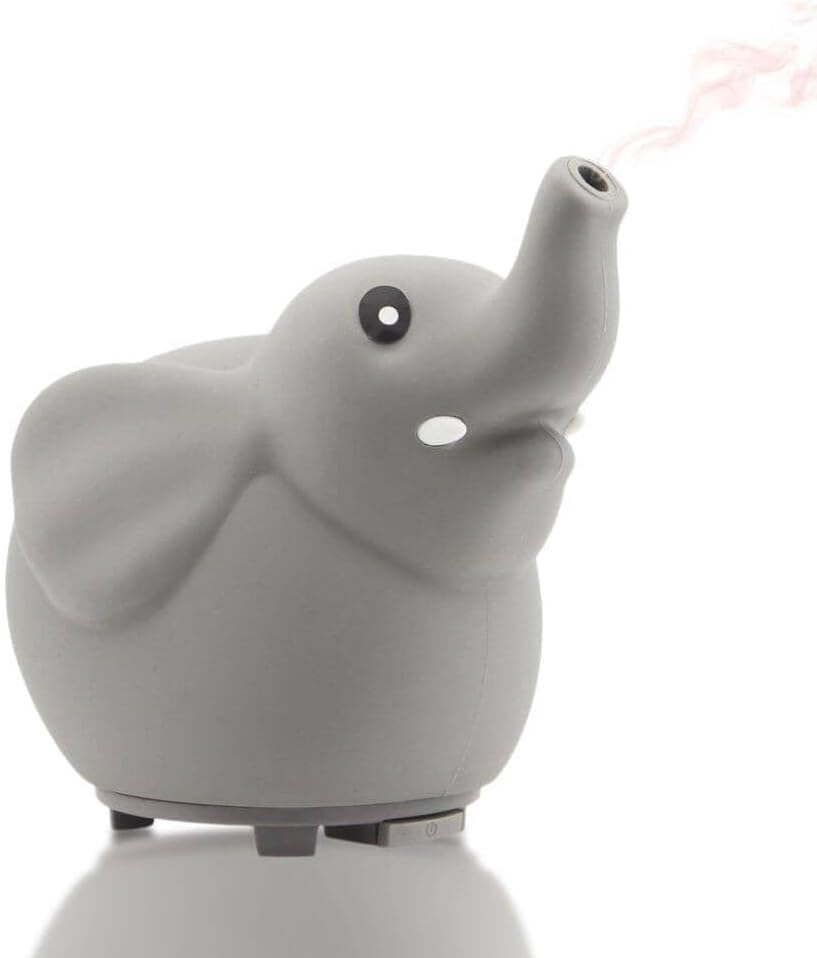 Our Elephant USB Powered Aromatherapy Diffuser is part of our Little Ones Aromatherapy series. With our new "Silicone Soft Top Design", this ultrasonic diffuser is safe for any age. The cute elephant's trunk is where you will see the cold mist escape. This makes the perfect fit for any child's room. Equipped with a color changing LED light, this also is a great lamp. You do have the option to diffuse without lights. Details Easy 1 button operation Auto Shut Off safety feature 60mL Water Capacity Great for Travel USB Powered (cord included), can also be plugged into a USB wall AC adapter LED Color-Changing Lights Cold Mist Diffusion BPA Free Total Run time of 3-4 Hours before auto shut off on a full water fill Dimensions: 4.75" x 4" x 4.75" Aroma2Go