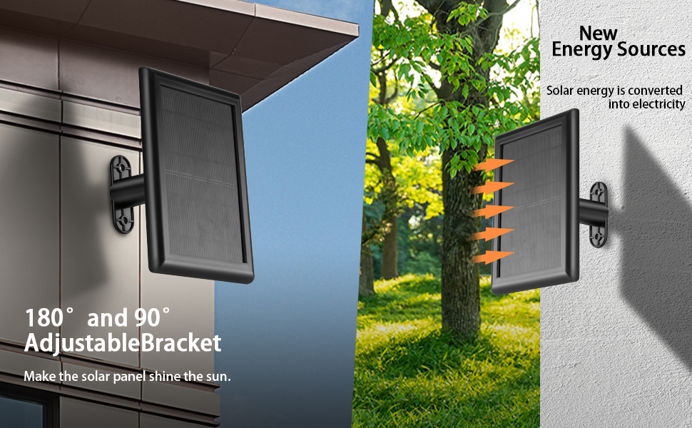 【سهلة الاستخدام】يمكن تدوير هذه اللوحة الشمسية 180 درجة، مما يجعل اللوحة الشمسية تتألق في الشمس، وتوصيل قابس الكاميرا، وضمان العمل الطبيعي طوال اليوم.