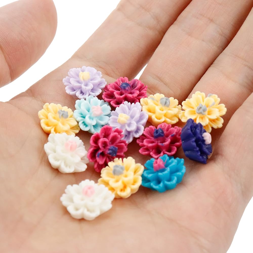 🌼Package comes 100pcs resin flowers with various color, over 10 colors in total can you match or mix them according to your own preference.