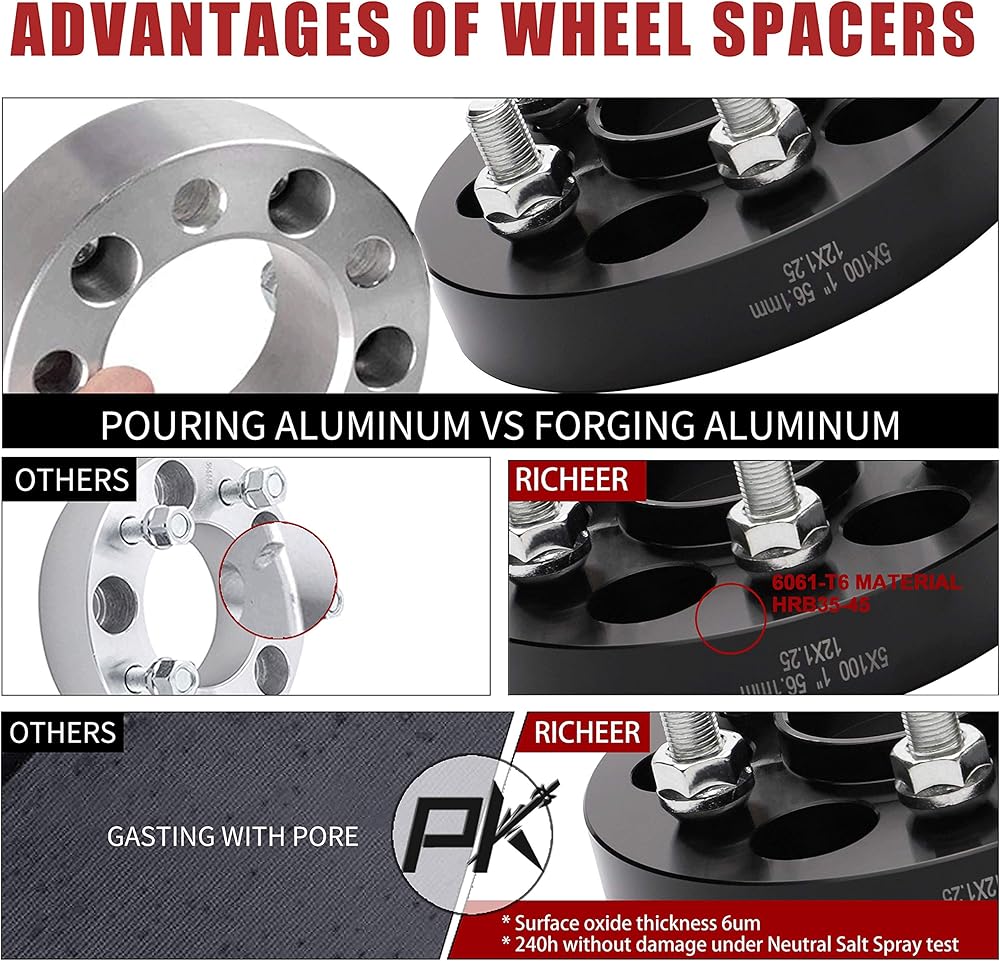 - 🚗【المواصفات: 4 قطع سمك 1 بوصة (25.4 مم) | نمط مسمار 5 × 100 | تجويف مركزي 56.1 مم | 12 × 1.25 مسامير/صواميل ملولبة.