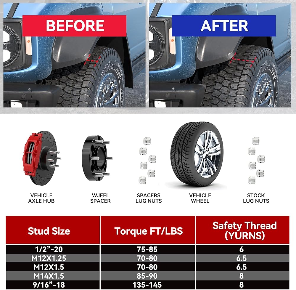 - 🚗【تشمل العبوة: 4 × فواصل عجلات مركزية (1 بوصة لكل وحدة)، 2 × قفل خيط عالي القوة (أحمر)، 2 × دليل مستخدم.