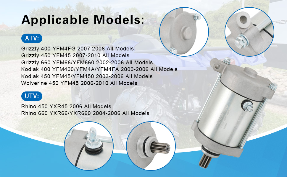بداية متوافقة مع 02-10 Yamaha Grizzly 400 450 660;00-06 Kodiak 400 450;06-10 Wolverine 450;04-06 Rhino 450 660 استبدال 4WV-81890-00-00 4WV-81800-00-00 18759 SMU02 63