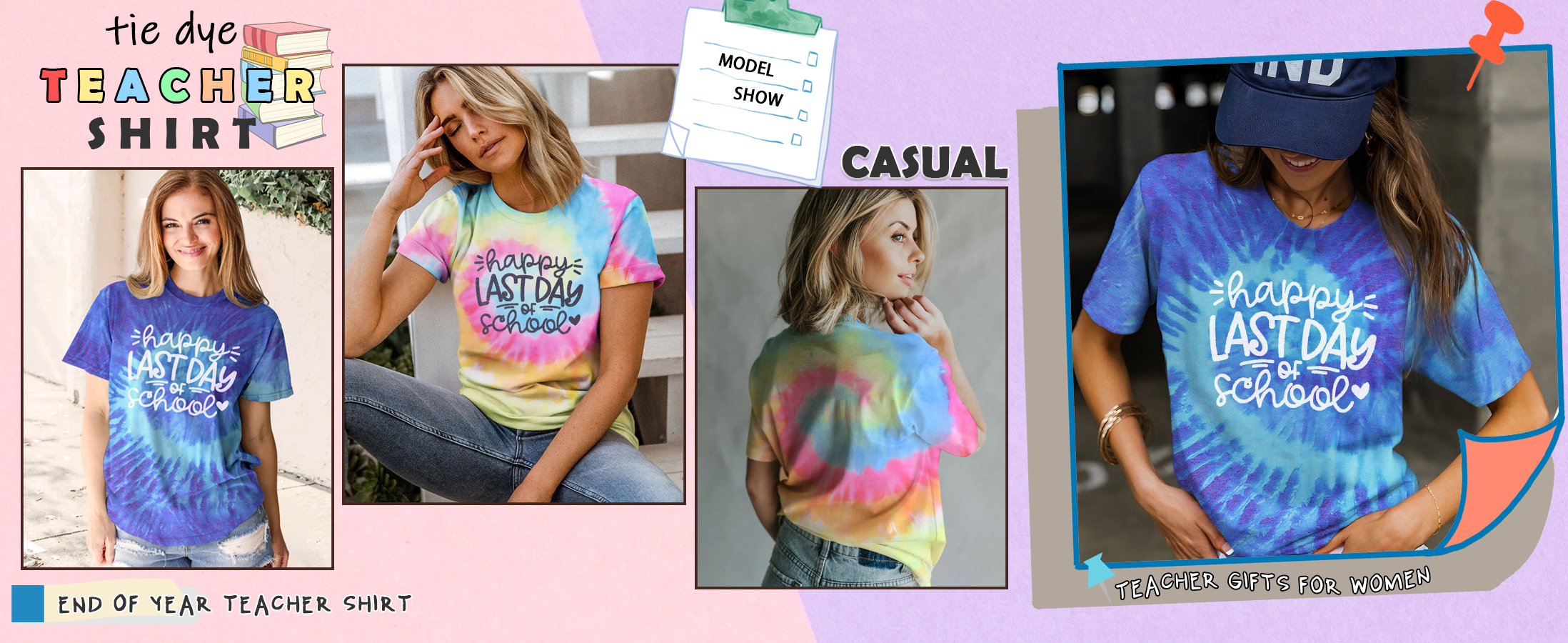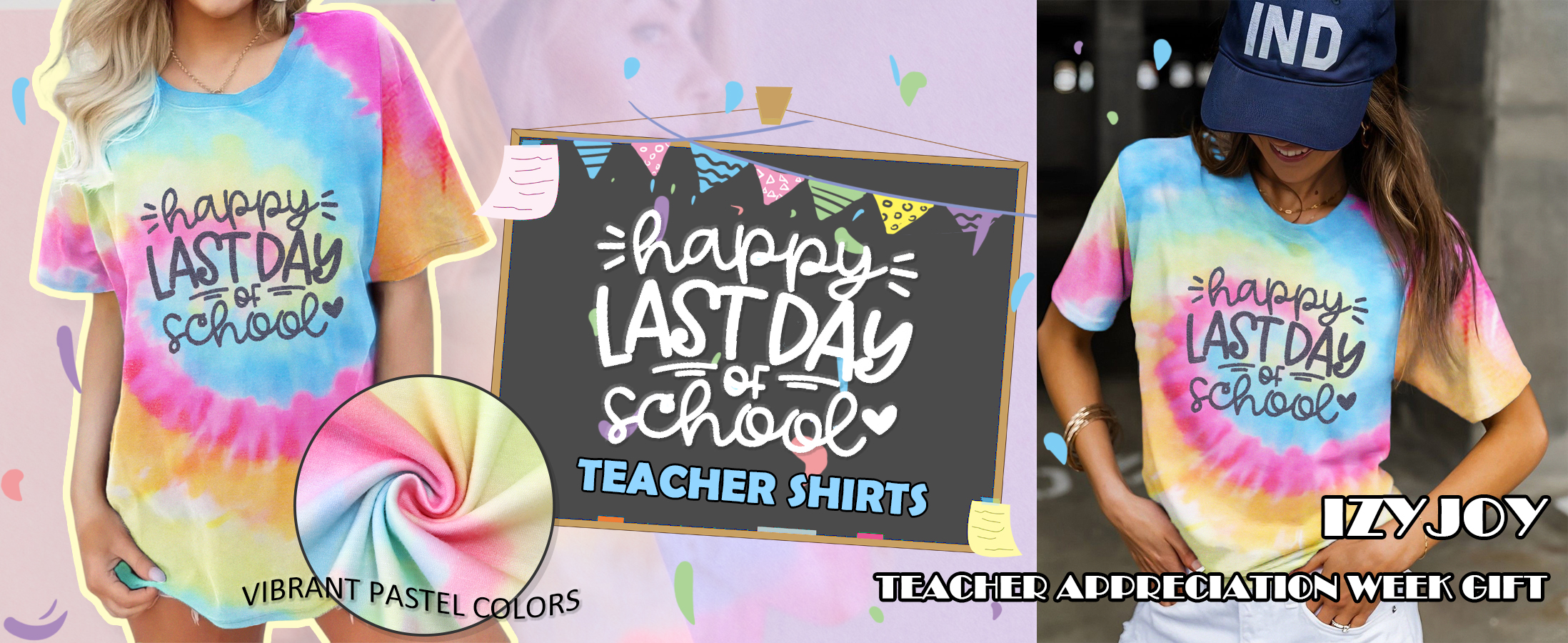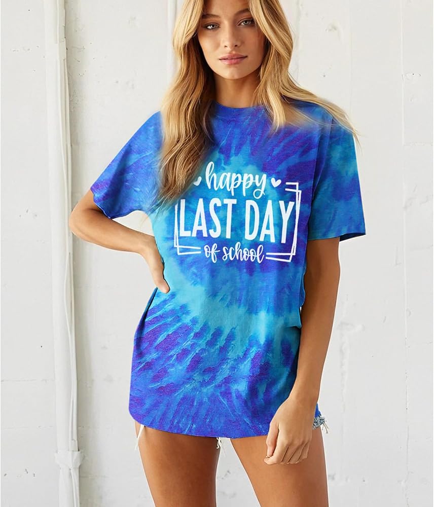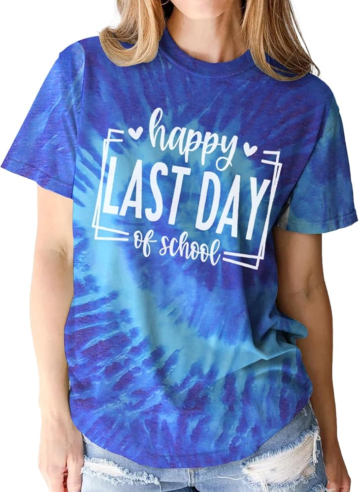 【المميزات: تي شيرت التخرج المدرسي للسيدات مثالي للاحتفال بنهاية العام، برقبة دائرية، وتصميم بأكمام قصيرة، ومطبوع عليه حرف "Happy Last Day of School" الممتع. أظهر حبك للتدريس مع تي شيرت Teacher Life الخاص بنا.