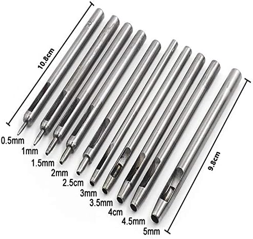 • -Hole Punch Set Size: 10Pcs different size round hollow leather hole punch: 0.5mm, 1.0mm, 1.5mm, 2.0mm, 2.5mm, 3.0mm, 3.5mm, 4.0mm, 4.5mm, 5.0mm.