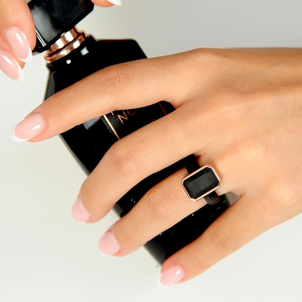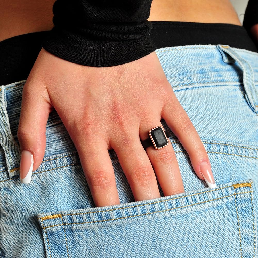 خواتم سيليكون للنساء من رينفيت - دبلة زفاف مطاطية - زمرد أسود وقلب عاري - معدن ذهبي وردي - مقاس 7