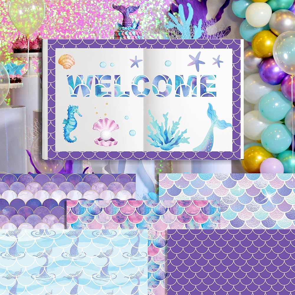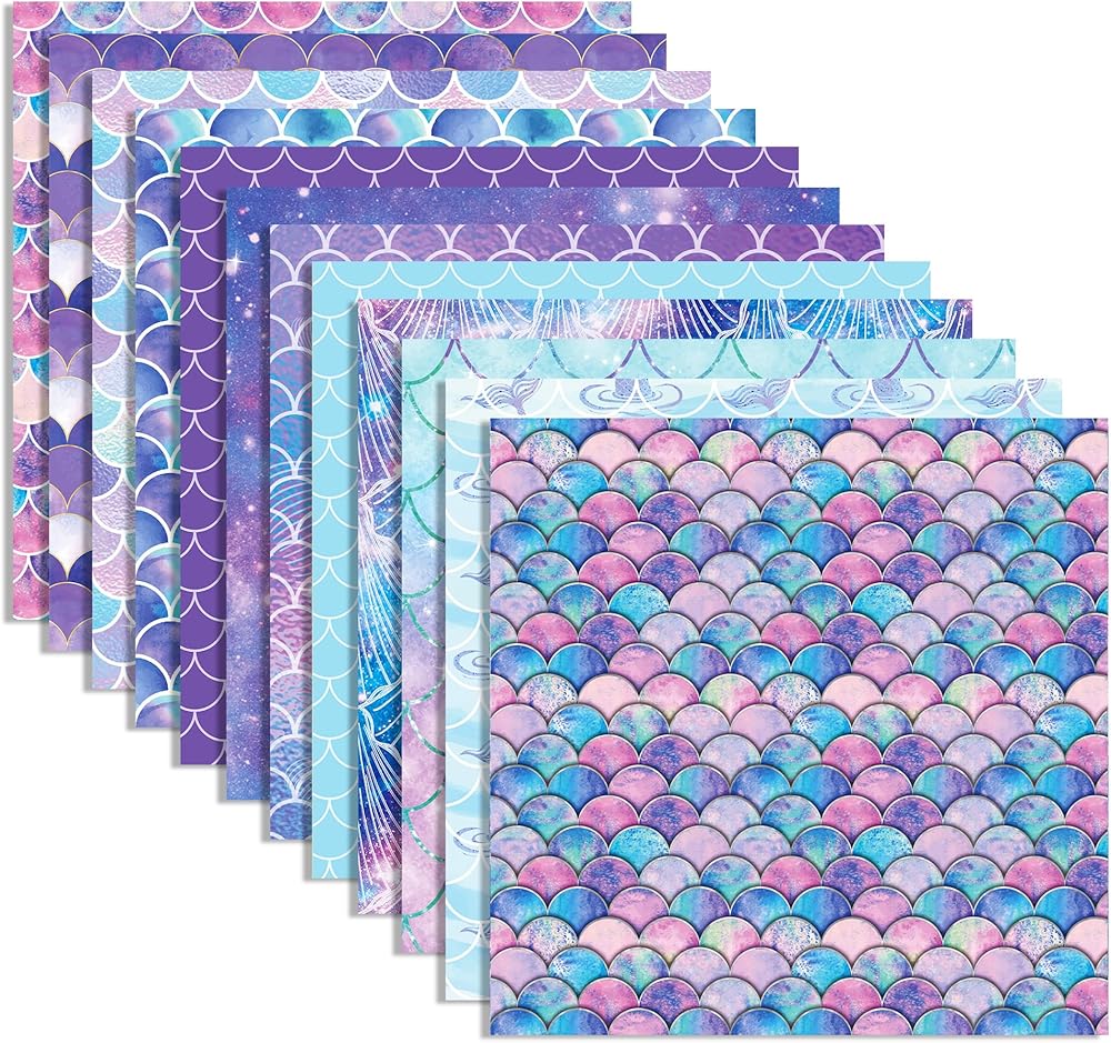 VIVIQUEN 24 حزمة من الورق على الوجهين بنمط حورية البحر، مقاس 30.48 سم باللون الأرجواني من ورق القصاصات المزخرف ورق الحرف اليدوية المطوي بشكل مسطح لبطاقة الخلفية DIY لصنع ديكور ألبوم القصاصات