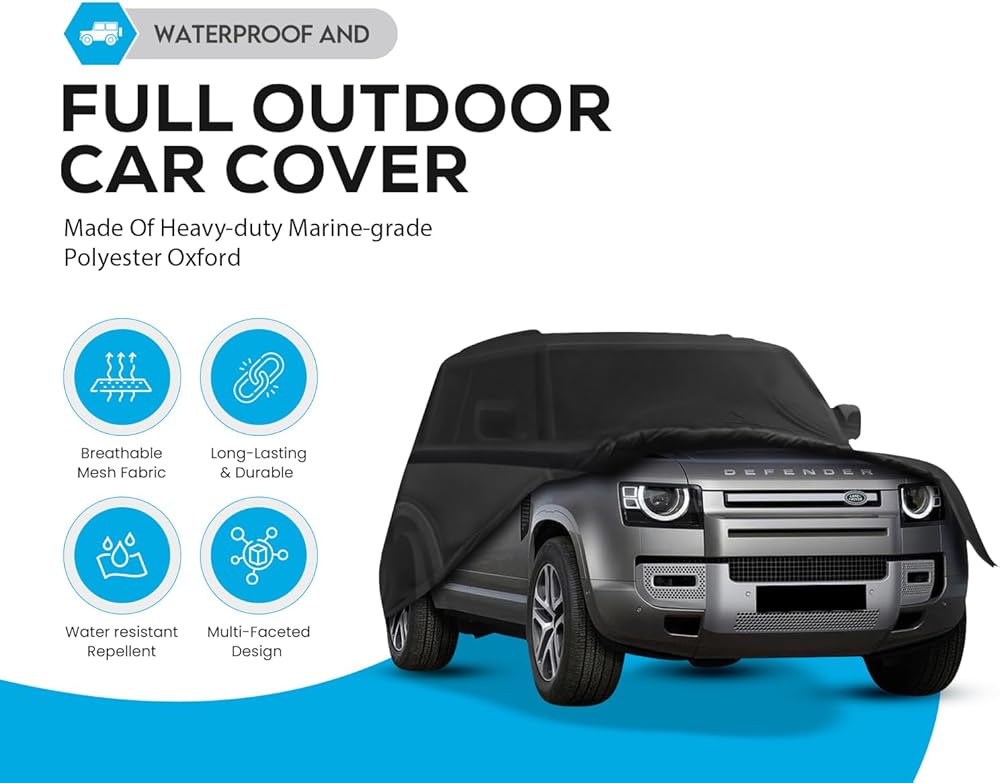 ابقِ جافًا، واستمتع بالقيادة: تم تصميم غطاء السيارة المقاوم للماء للحفاظ على سيارتك جافة حتى في أصعب الظروف الجوية. قل وداعًا لبقع الماء والصدأ وتلف الطلاء الناتج عن المطر أو الثلج.
