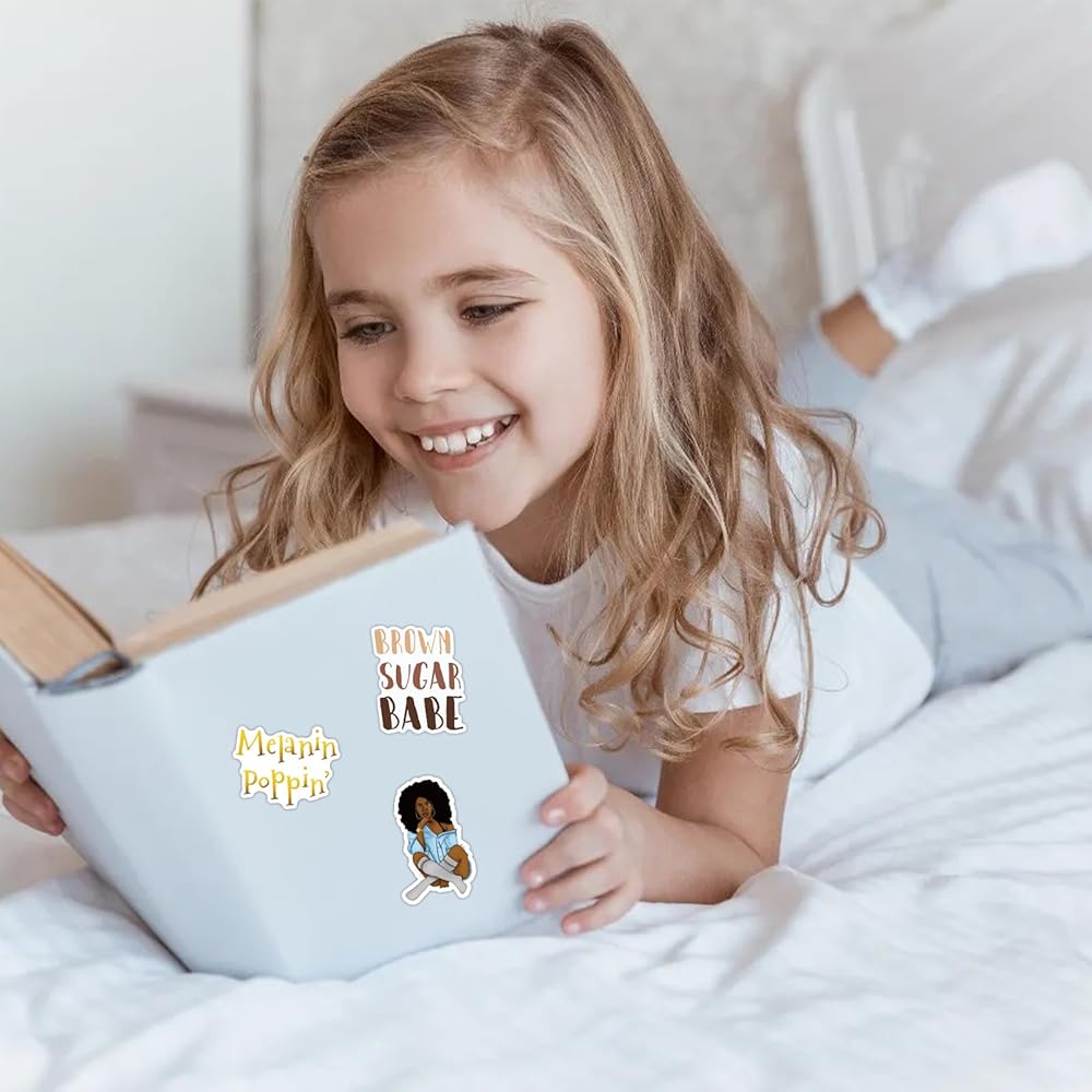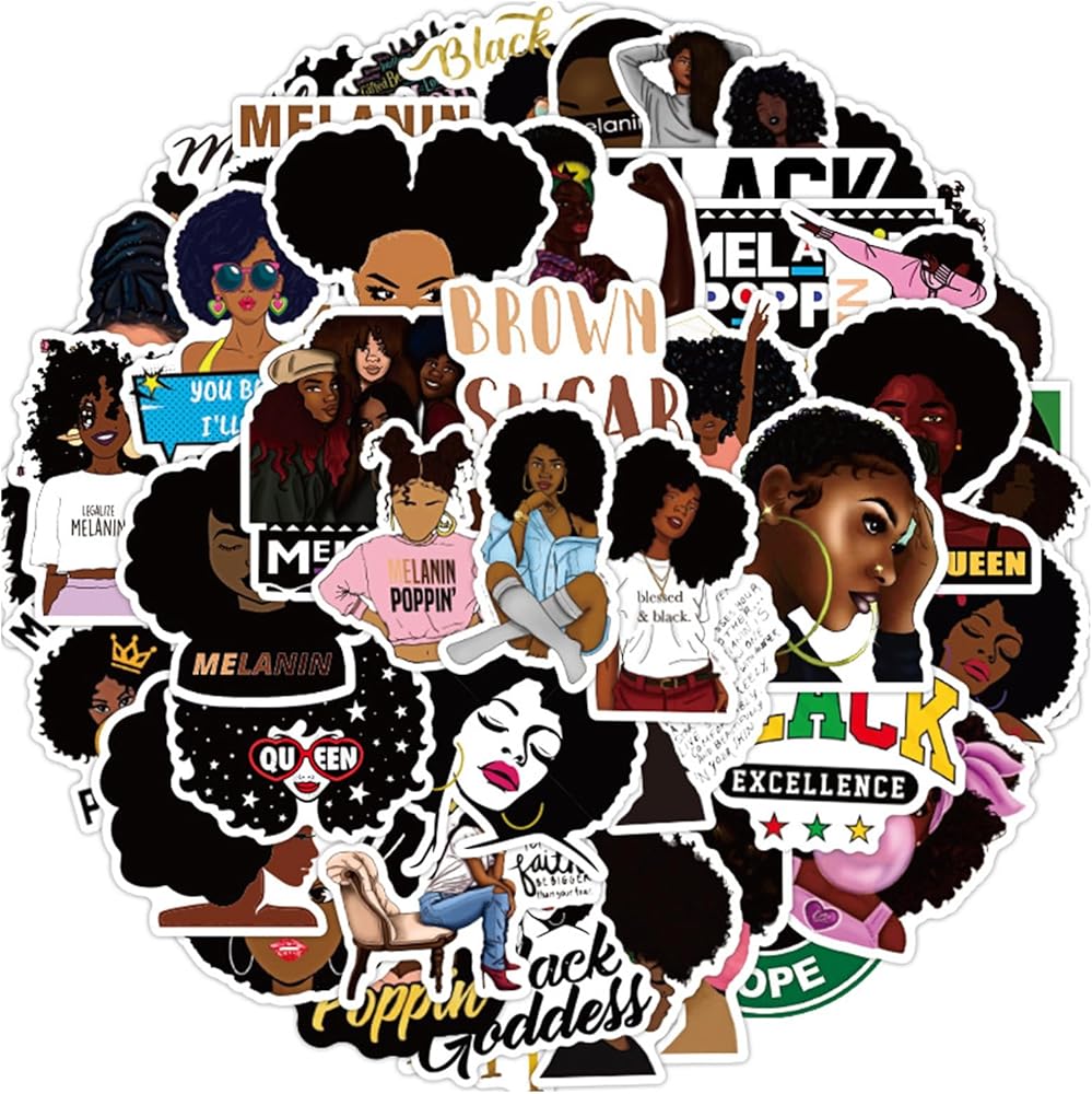 What you will get: You will get 50 exquisite african american stickers in a variety of different styles. You can DIY your own items with your friends to create your own personal charm. The black women stickers quantity and styles are sufficient.