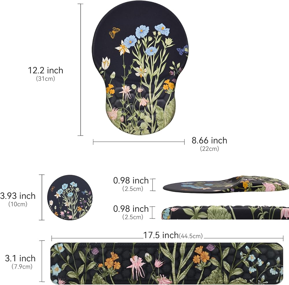 مسند معصم مريح من Ospelelf، مجموعة دعم معصم مريحة للماوس ولوحة المفاتيح 3 في 1، إسفنج الذاكرة، قاعدة PU غير قابلة للانزلاق لدعم المعصم للمكتب والاستخدام المنزلي، زهري