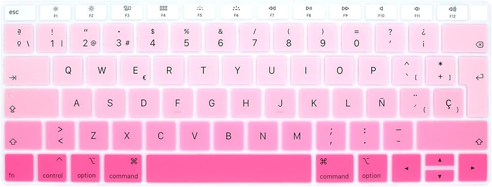 3) تتم طباعة الكلمات الرئيسية الإسبانية على غطاء لوحة المفاتيح، كما أن غلاف السيليكون يجعل الكتابة أسهل.