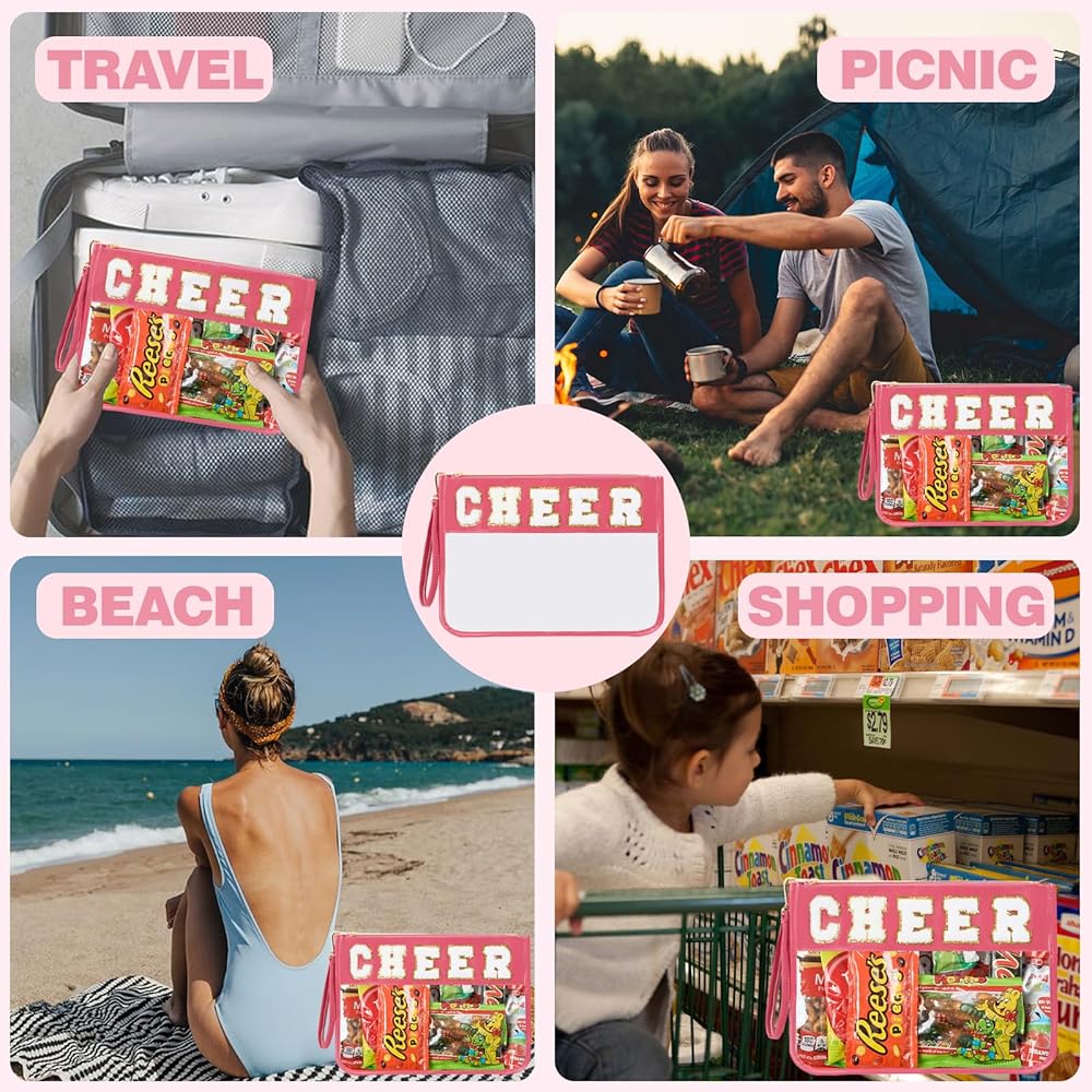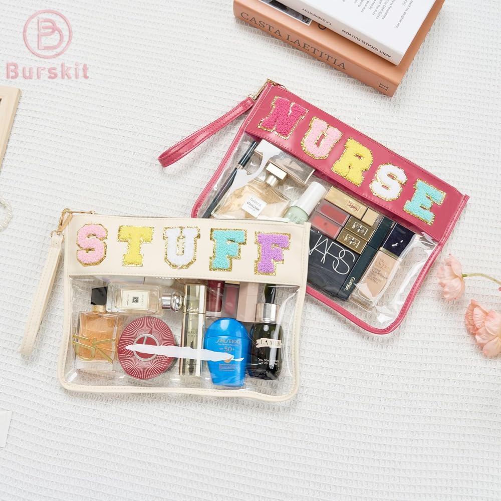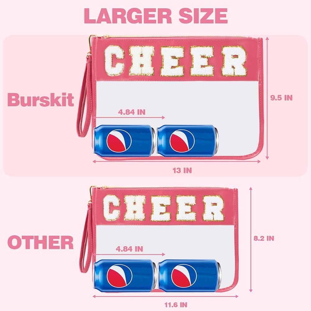 حجم الحقيبة المسطحة الشفافة: 11.6 بوصة × 8.2 بوصة (الطول × العرض)، إنها خفيفة الوزن ولكنها ستحمل ما تحتاجه، مثل مستحضرات التجميل وأدوات الزينة والواقي من الشمس وربطات الشعر والوجبات الخفيفة.