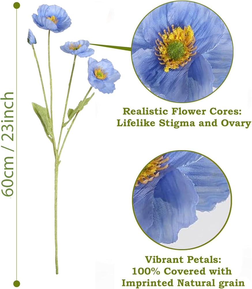 🌺مواصفات الباقة🌺 تحتوي العبوة على 6 قطع من الخشخاش الصناعي، تحتوي كل منها على ثلاث زهور وبرعم واحد، ويبلغ طولها 23 بوصة. مجموعة كبيرة من فرع واحد، سهلة الجمع بحرية، يتم تعبئة الزهور الاصطناعية في صناديق لمنع تلف النقل.