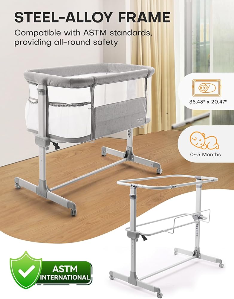 • حافظ على سلامة الطفل وراحته: تم تصنيع سرير النوم بجانب السرير من الألومنيوم بدرجة الطيران وسبائك الفولاذ من أجل المتانة، وهو متوافق تمامًا مع معايير ASTM وCPSIA وCCPSA، مما يحافظ على سلامة طفلك ويعزز الترابط بين الوالدين والرضع بجانب السرير. طفلك الصغير