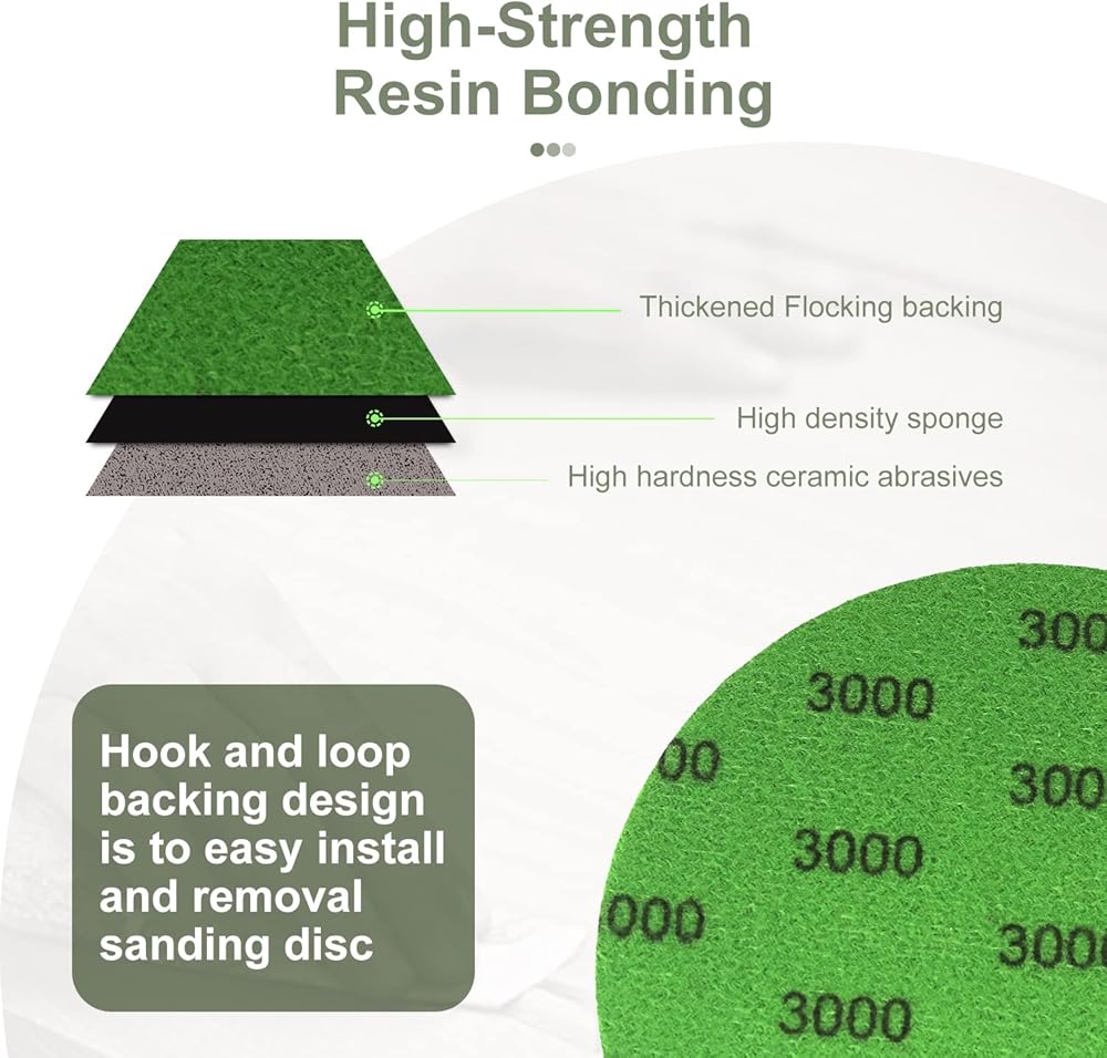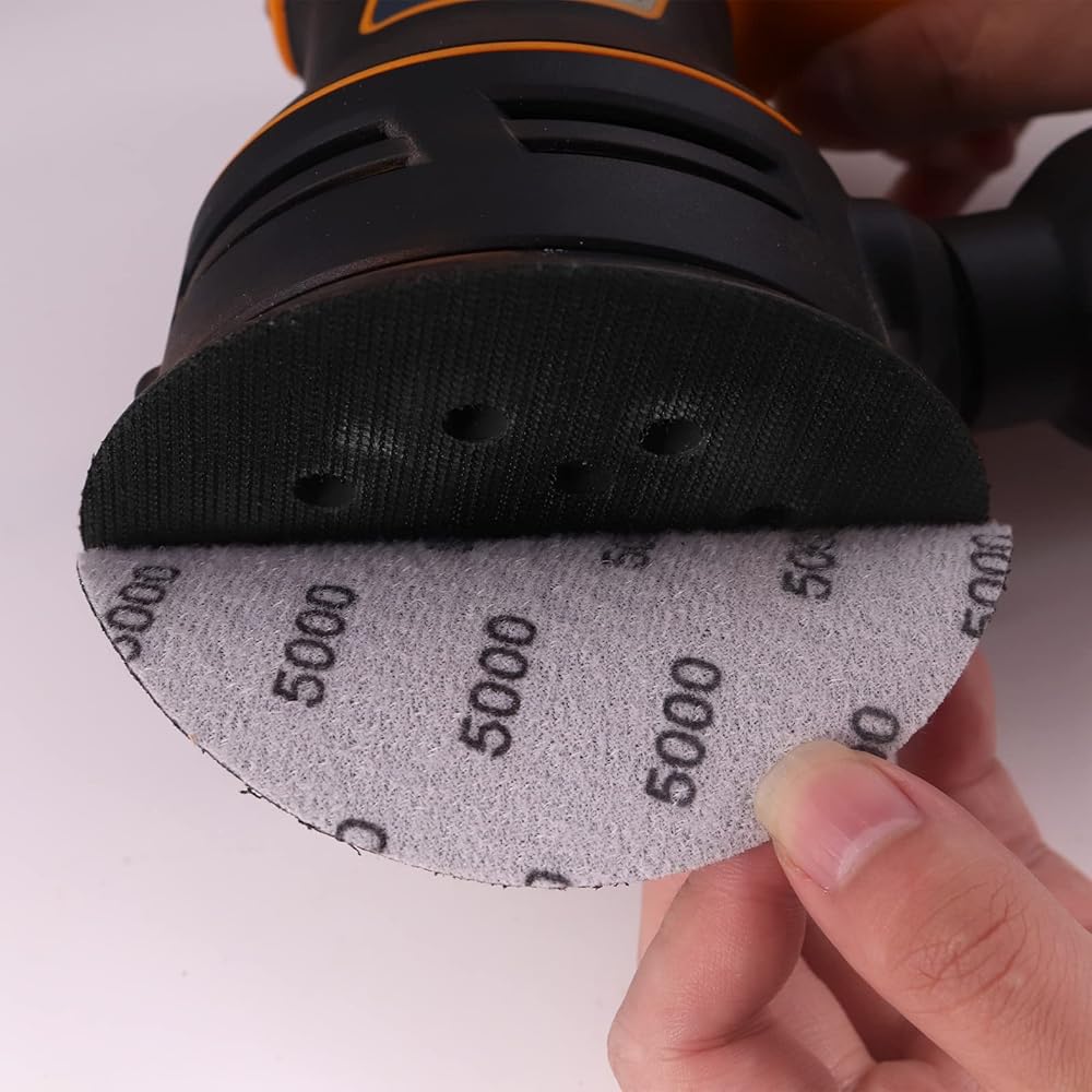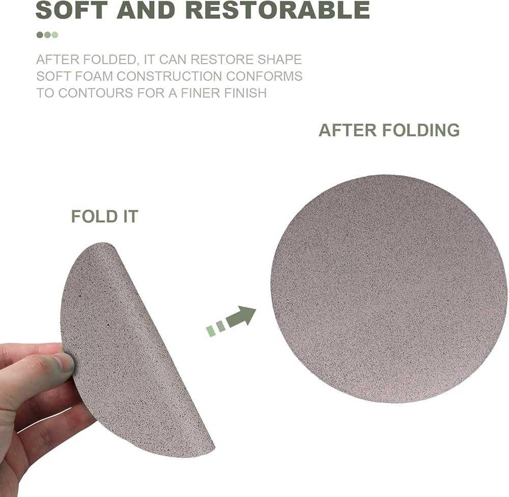 【PREMIUM MATERIAL】-5 inch round sandpaper Disc is made of high hardness Ceramic Abrasive and Flexible foam materials with high density of 25KGS/m3,Which is wear-resisting,sharp,waterproof,good flexibility and anti- static,Provide excellent flexibility for finishing and polishing metal and coatings.